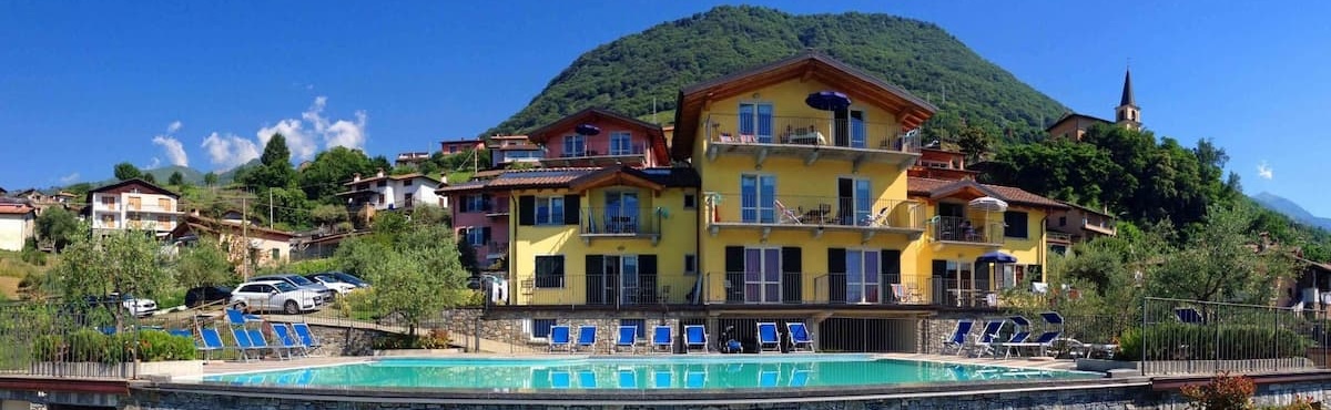 Das 2025 renovierte Ferienhaus Adriano mit 5 Ferienwohnungen liegt in Colico in leichter Hanglage in der Bucht Piona im Norden vom Comer See.