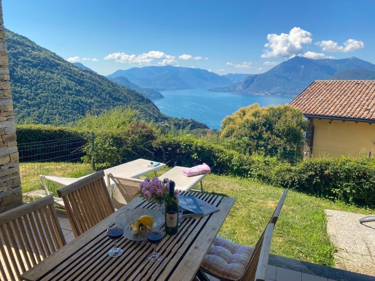 Die Ferienwohnungen Paradiso Sole und Luna sind mit Terrasse und kleinem Garten mit traumhaftem Seeblick in einer versetzt gebauten Hauszeile. Die anderen Wohnungen werden meist privat genutzt für die Ferien, oft nur am Wochenende. Die Häuser stehen am oberen Ostufer an der südlichen Spitze von Vestreno, das Bergdorf oberhalb des Uferortes Dervio, einzigartig auf einem Sonnenhügel am Ostufer über dem Comer See. Im Umfeld gibt es das malerische Bergdorf, viel Natur und Kastanienwälder, die zum Wandern einladen, z.B. auch zum 2600 m hohen Hausberg Monte Legnone. Ein Eldorado für Wanderer und Mountainbiker sowie für sonnenhungrige