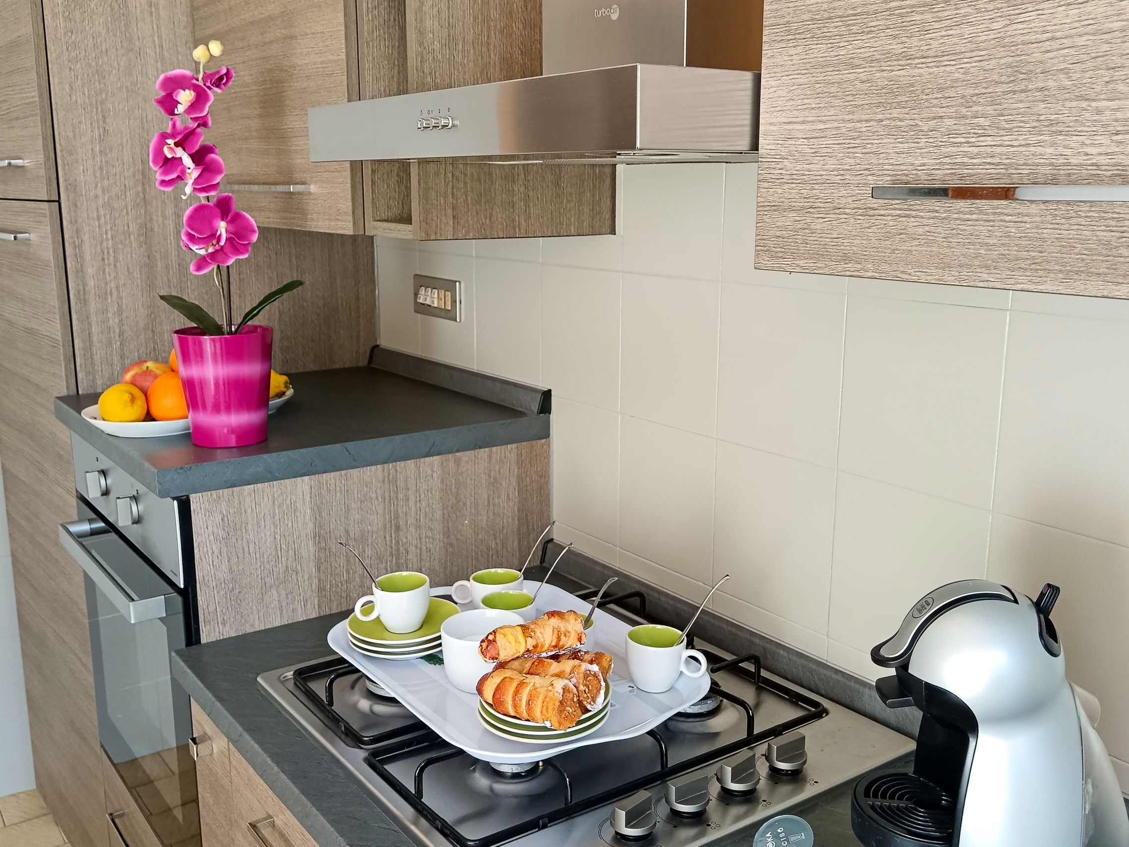 Die Wohnung ist mit klassischen lombardischen Fliesenböden ausgestattet und insgesamt hell, großzügig und einladend eingerichtet.