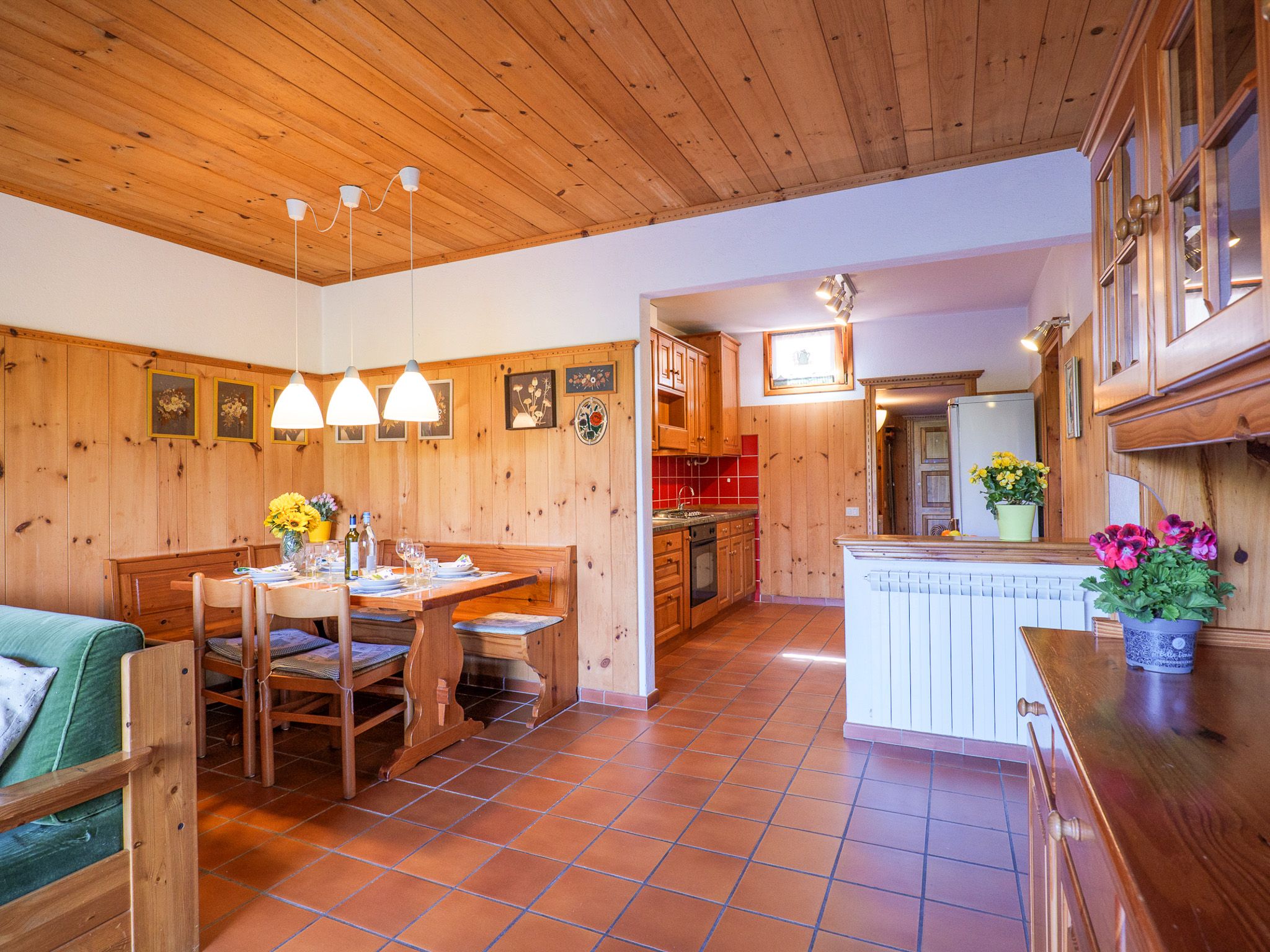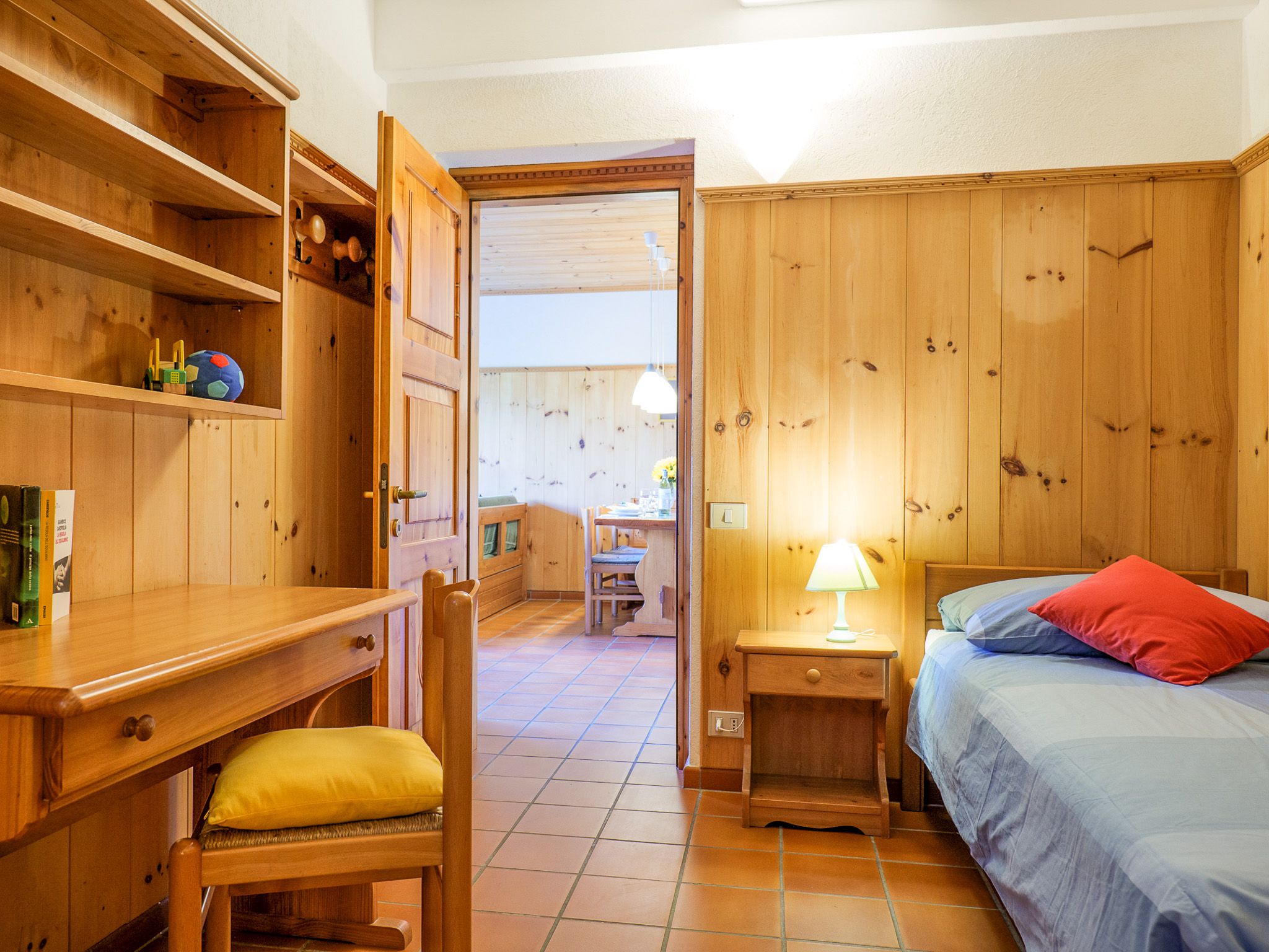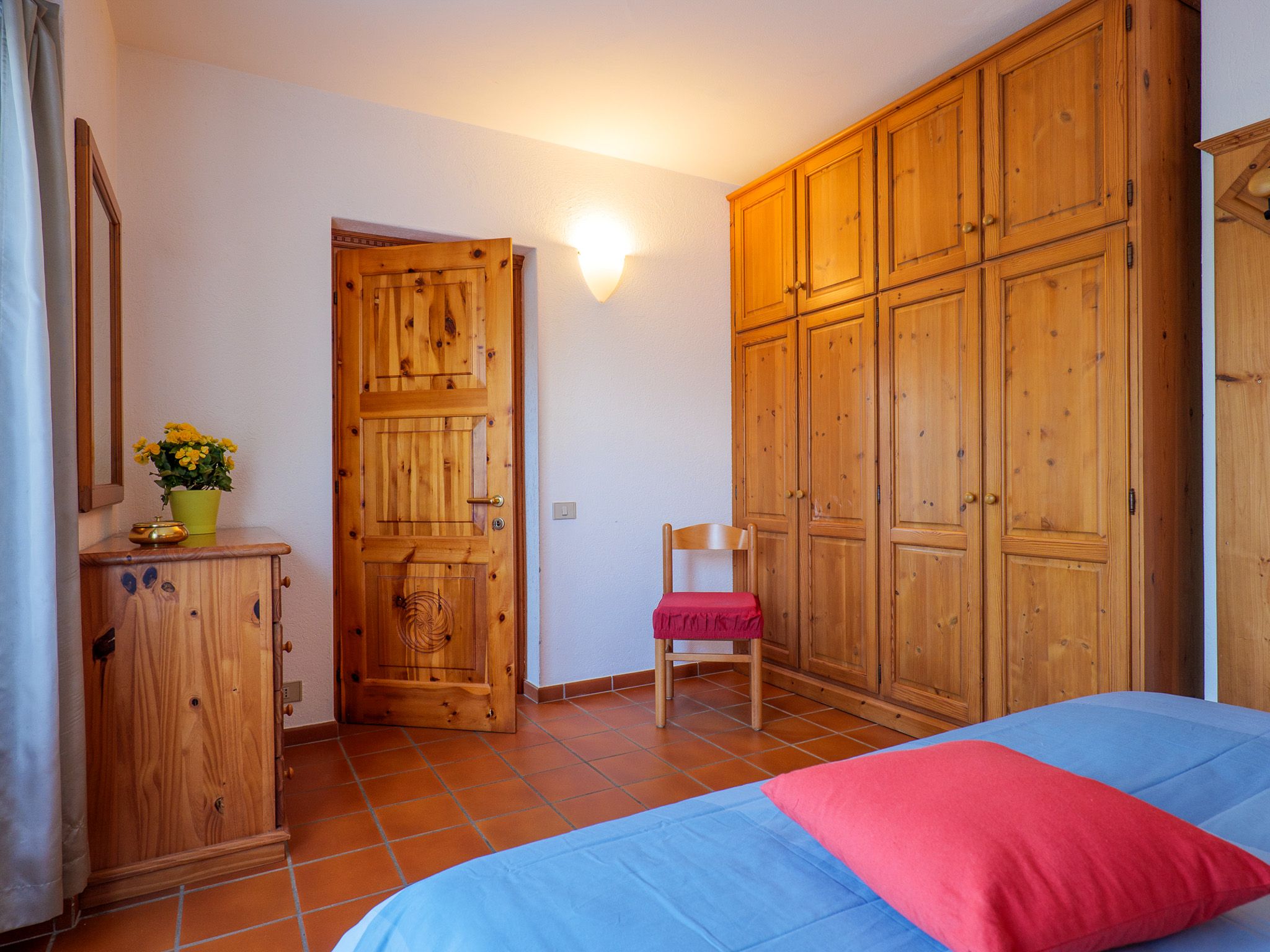 Das Ferienhaus Carlo ist in lombardischer, hochwertiger Schreinerarbeit eingerichtet .Warme Cotto-Fliesen und Parkett im Schlafbereich schaffen Behaglichkeit und Wohlfühlatmosphäre.