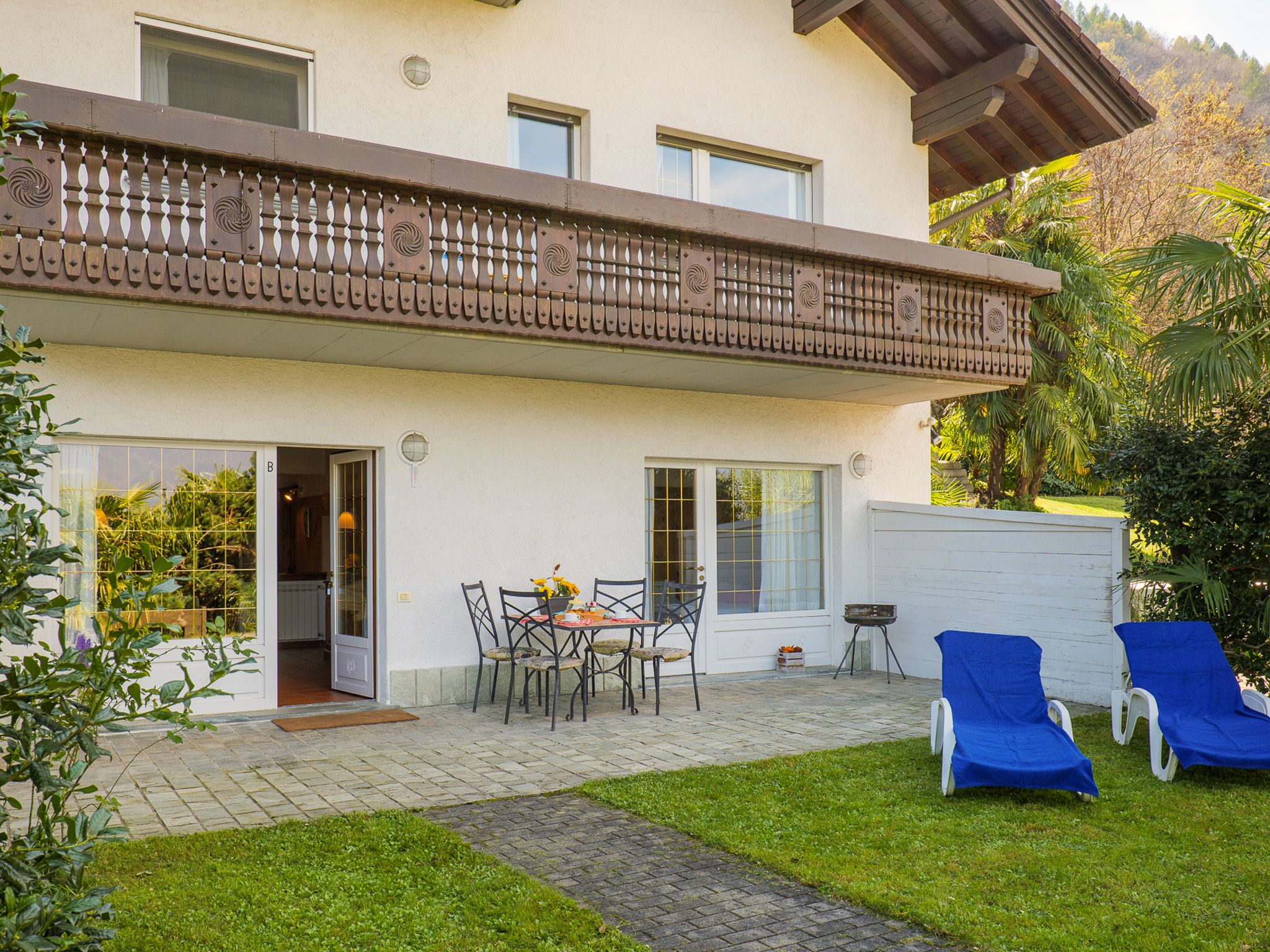 Carlo B hat einen schönen Garten zur Seeseite mit teilüberdachter Terrasse.