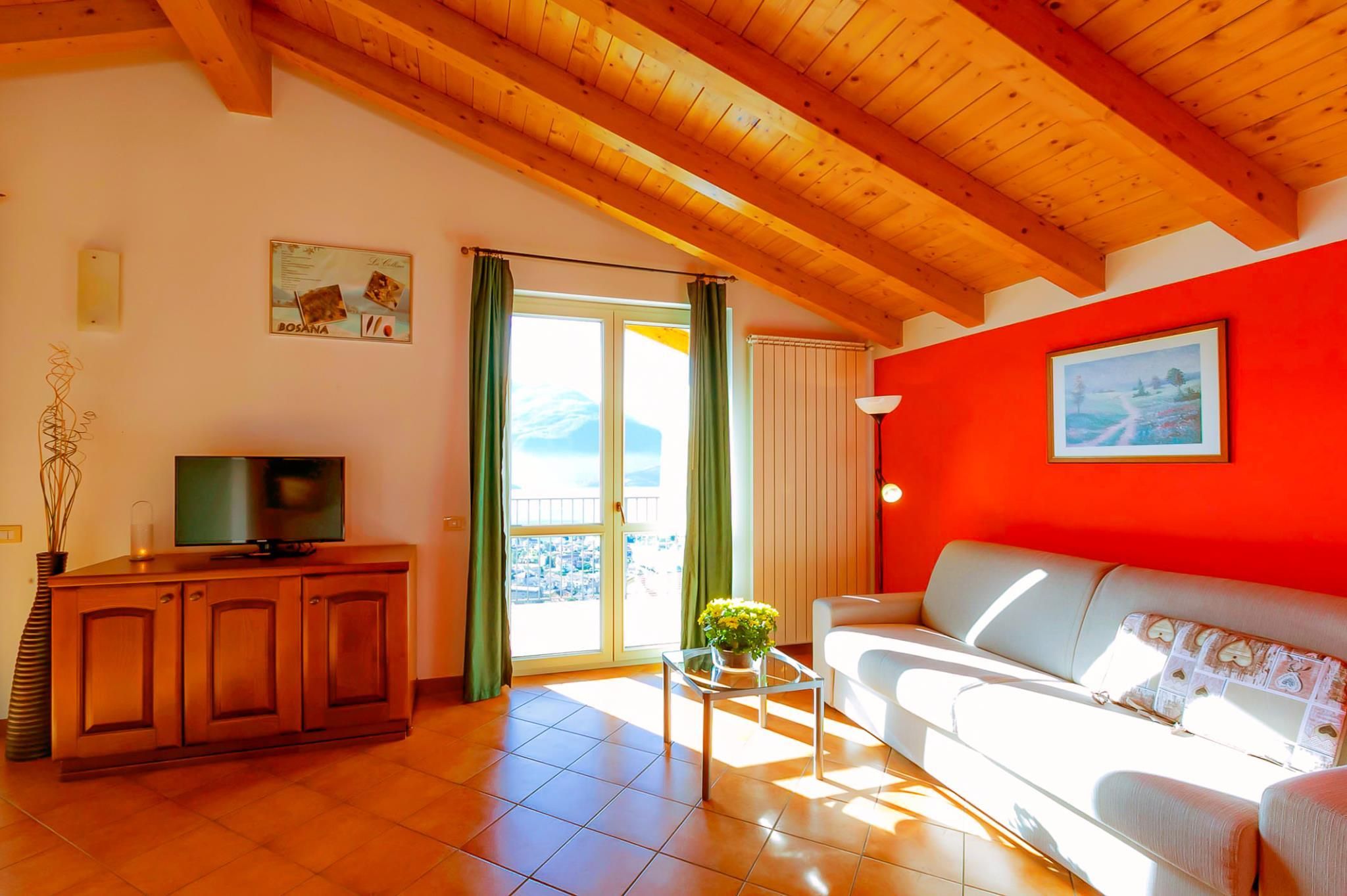 Wohnung Bosana: Genießen Sie in den lichtdurchfluteten, großzügigen Wohnbereich mit Zugang zum großen Panorama-Balkon.