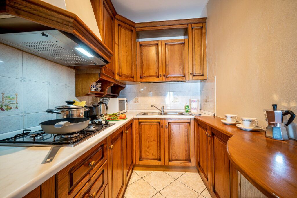 Die Küche ist im rustikal italienischen Stil in Holz.