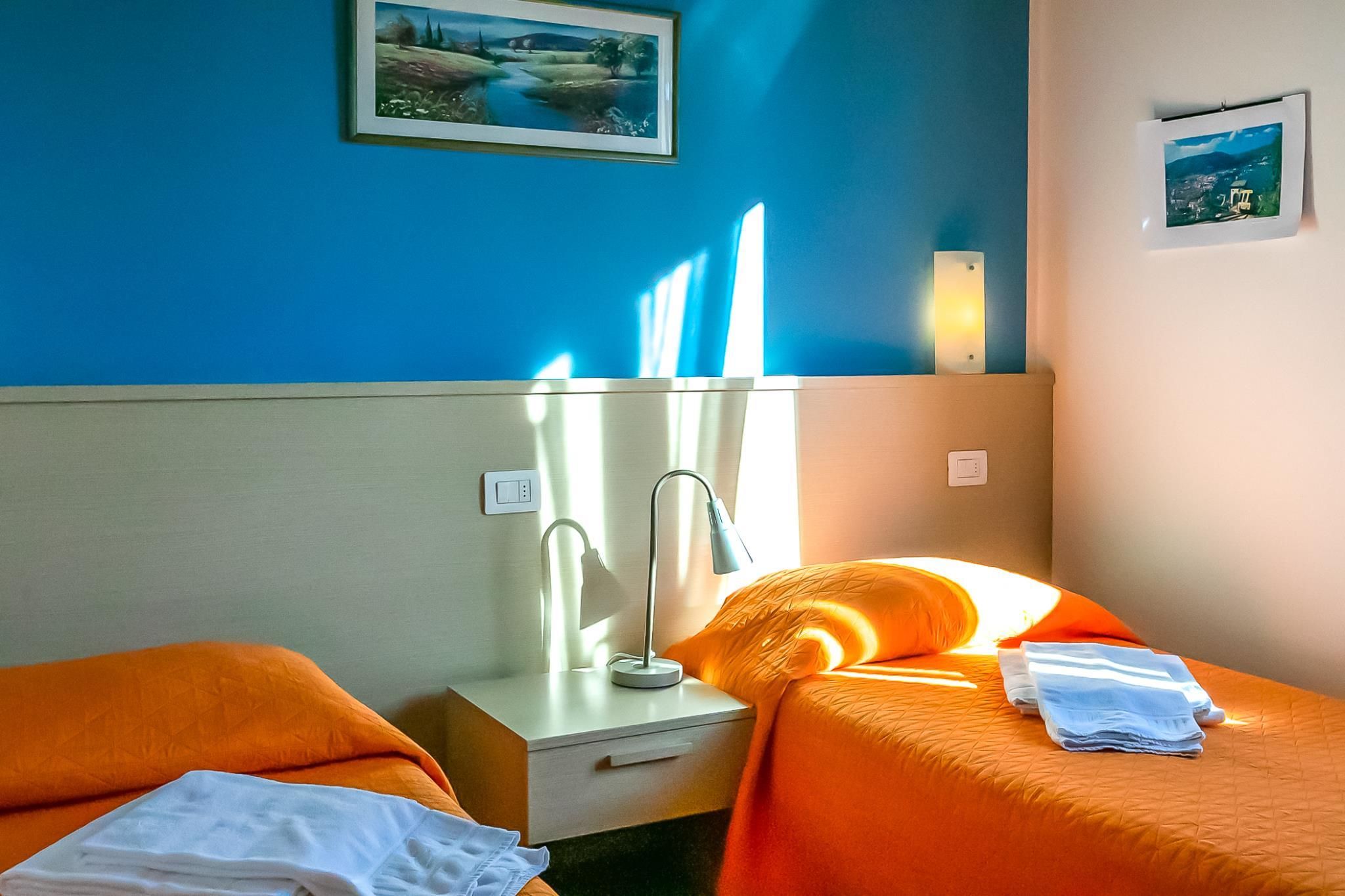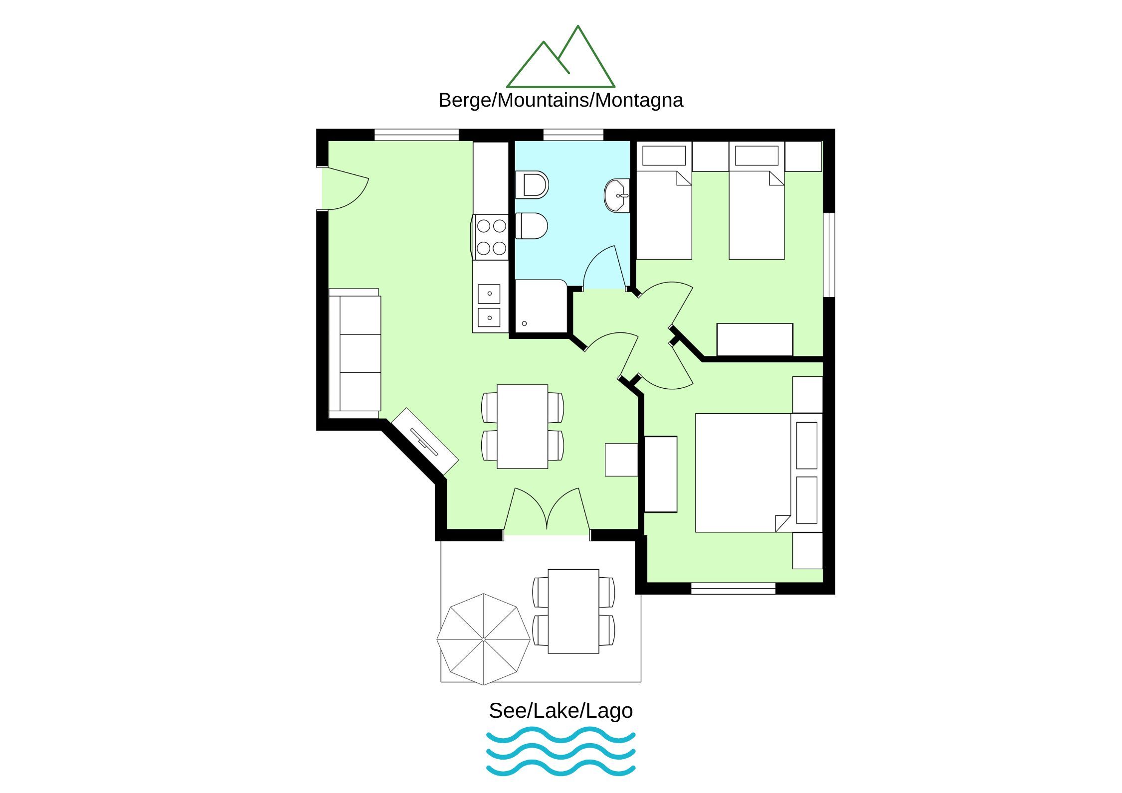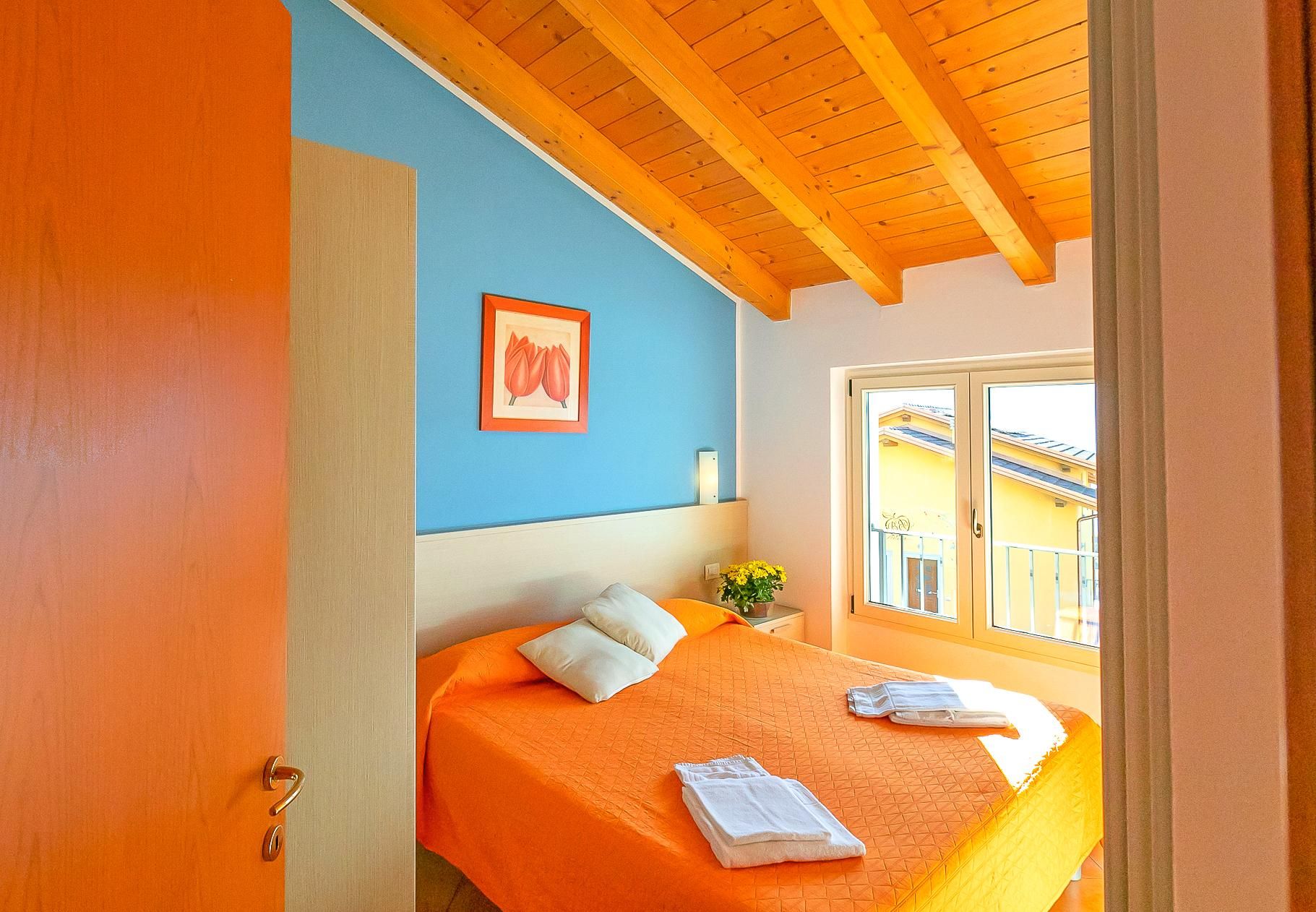 Es gibt ein Doppelzimmer zur Seeseite mit traumhaften Panoramablick und ein Zweibettzimmer (Betten zusammenstellbar) zur Bergseite, sowie ein Bad mit Waschtisch, Badewanne und WC/Bidet.