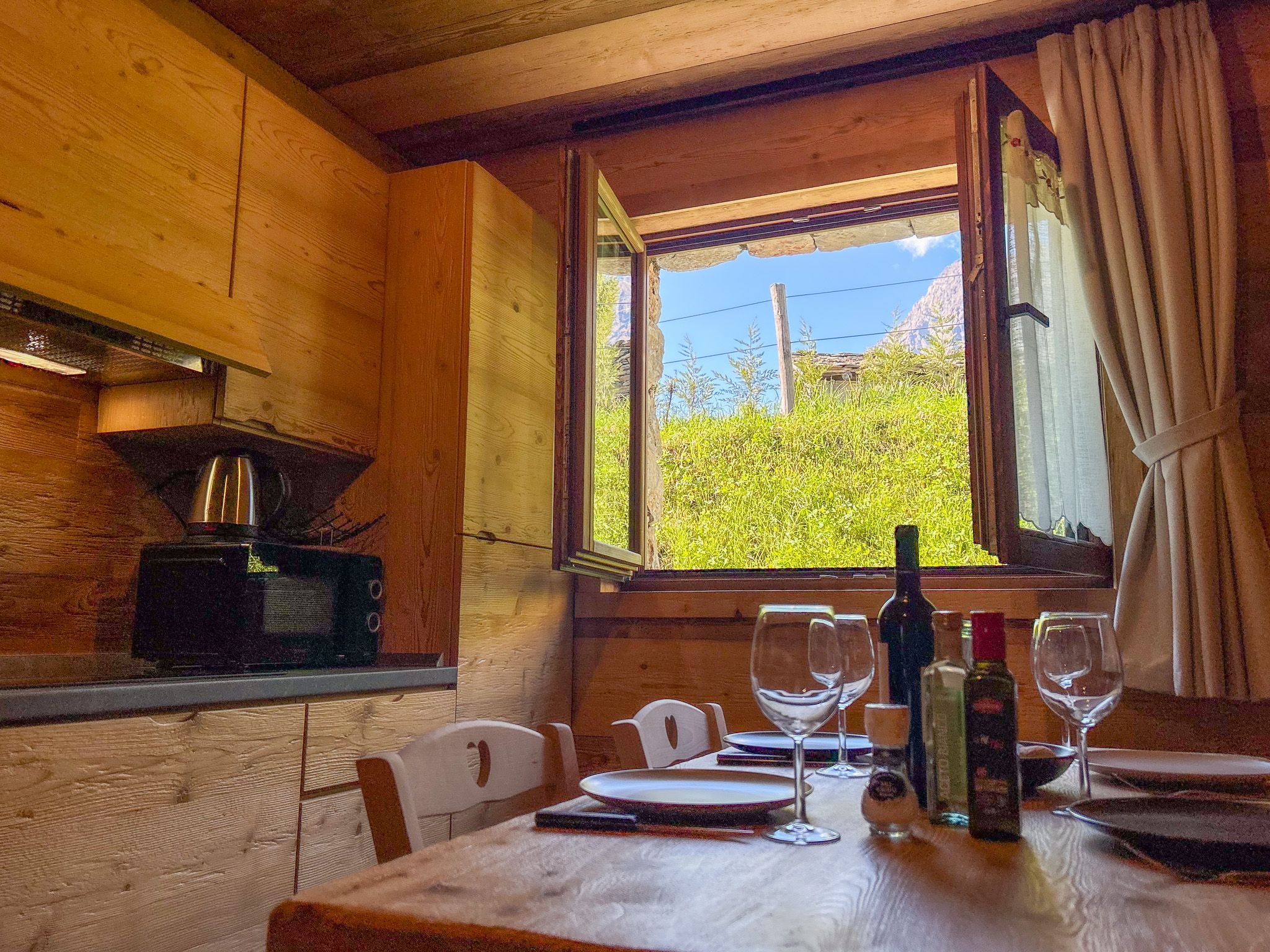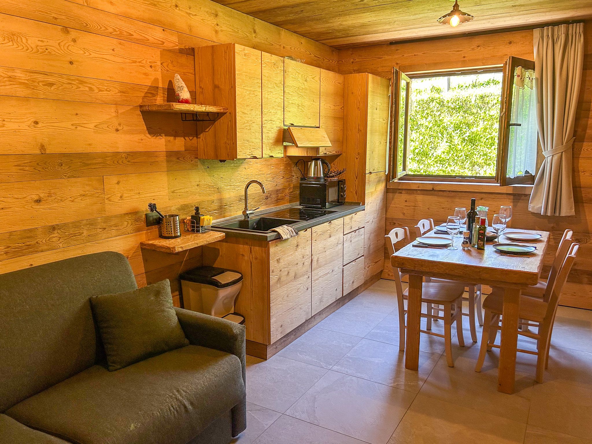 Die Ferienwohnung Lago Palù befindet sich im Erdgeschoss des Hauses und verfügt über einen offenen Wohnbereich mit Einbauküche, einem Badezimmer mit Dusche und Fenster, einem separaten Schlafzimmer wo sich das bequeme Doppelbett befindet. Ein Schlafsofa befindet sich im offenen Wohnraum.