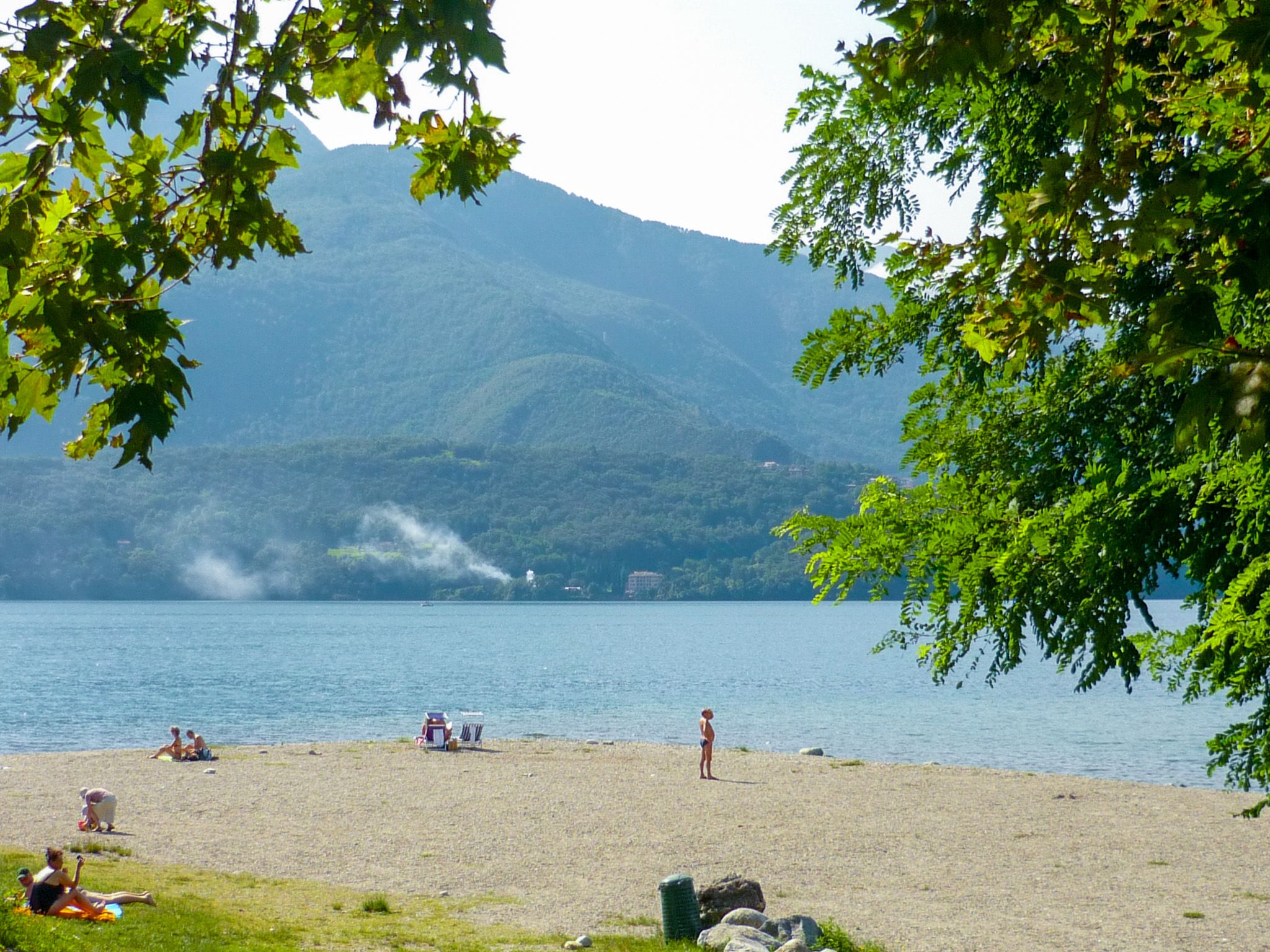 Je nach Wasserstand des Sees bietet der Strand eine gute Spielmöglichkeit für Ball und Strandspiele.