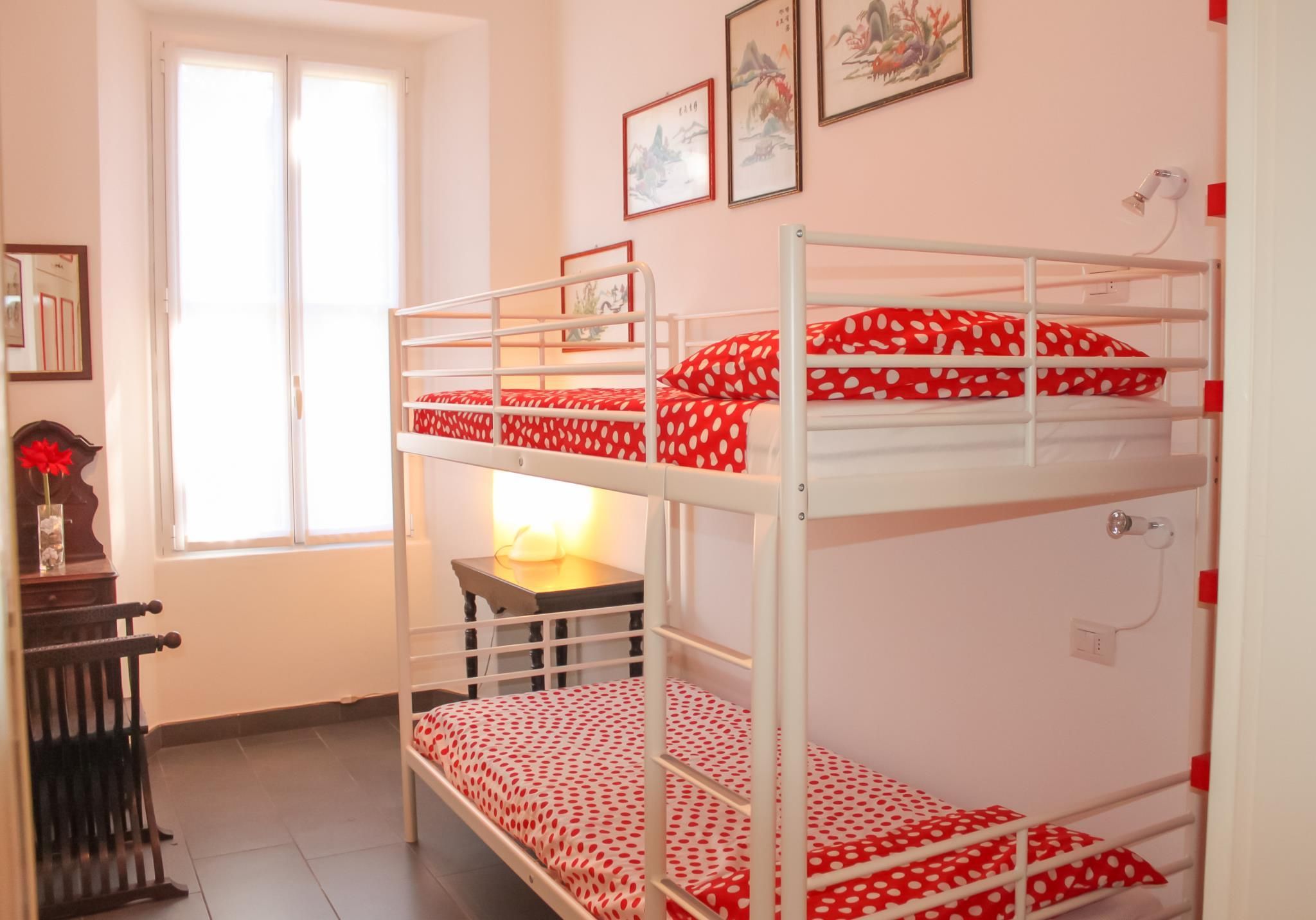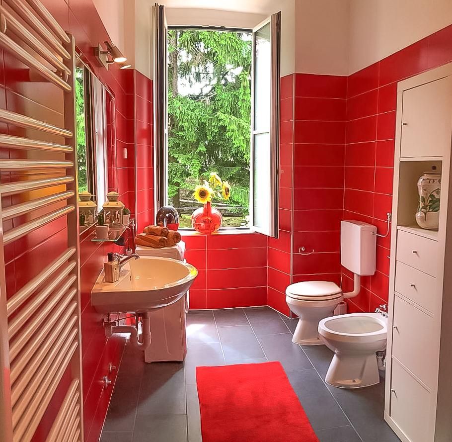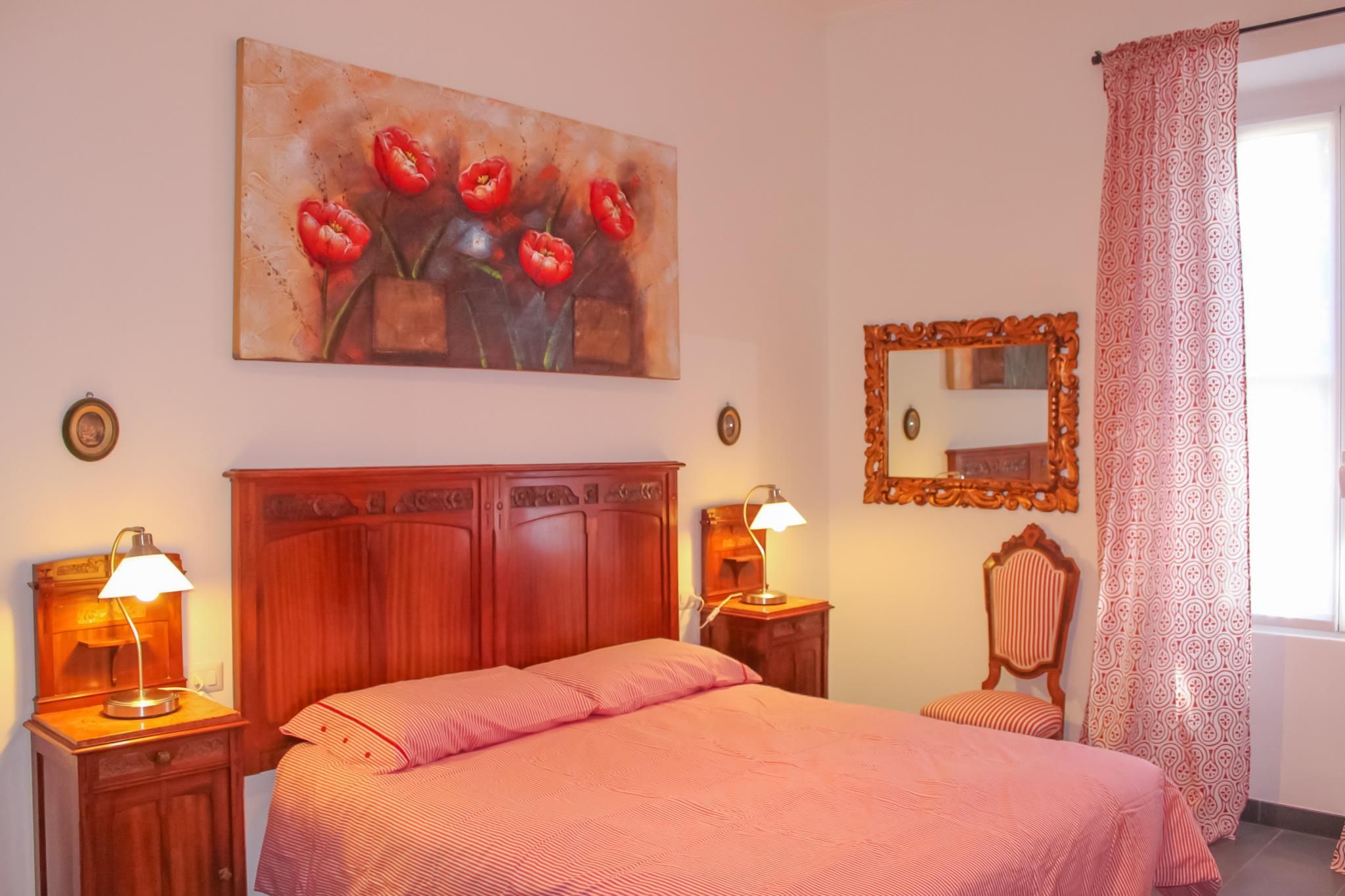 Ein großes Doppelbettzimmer mit Blick in den Garten.