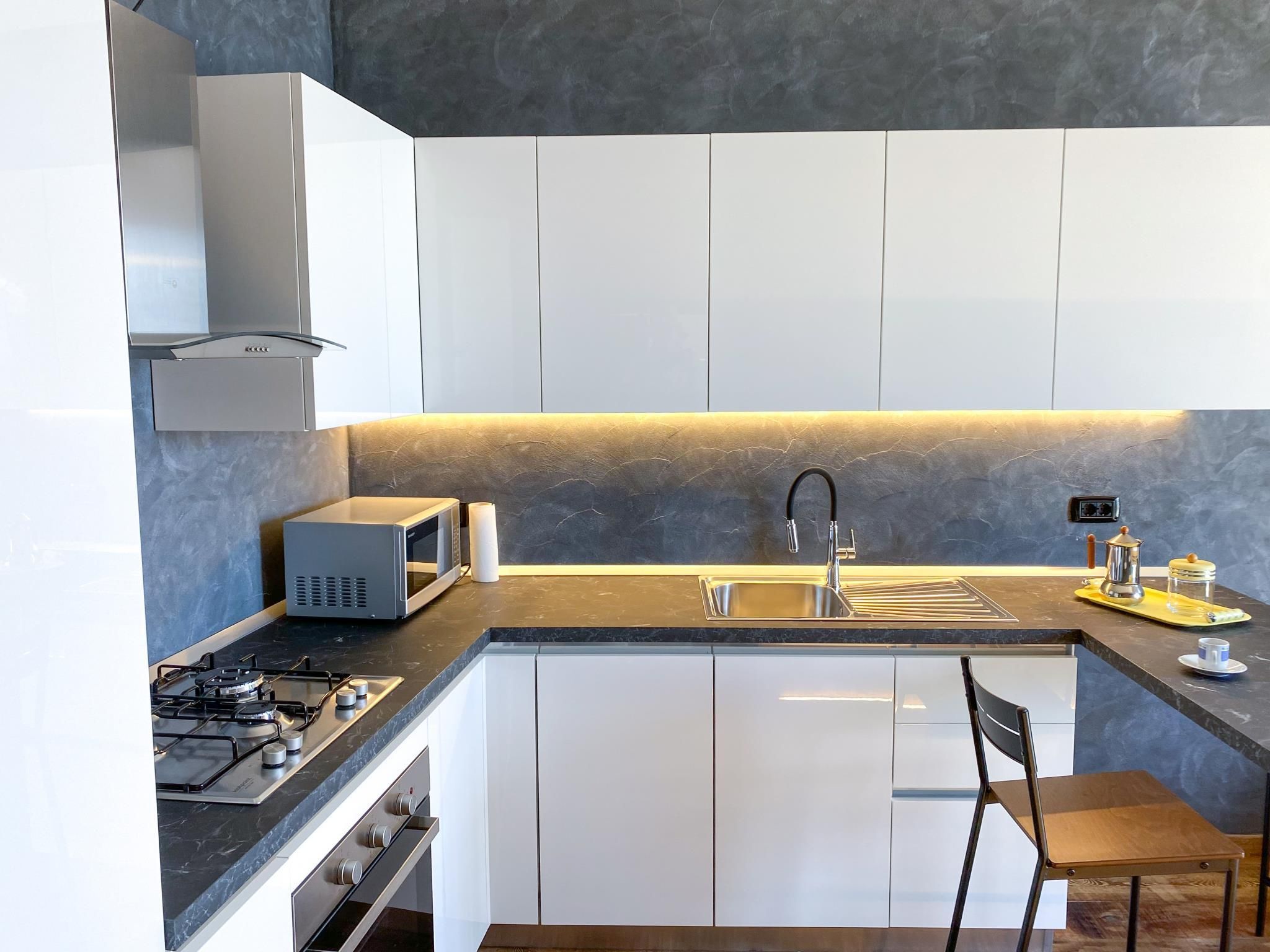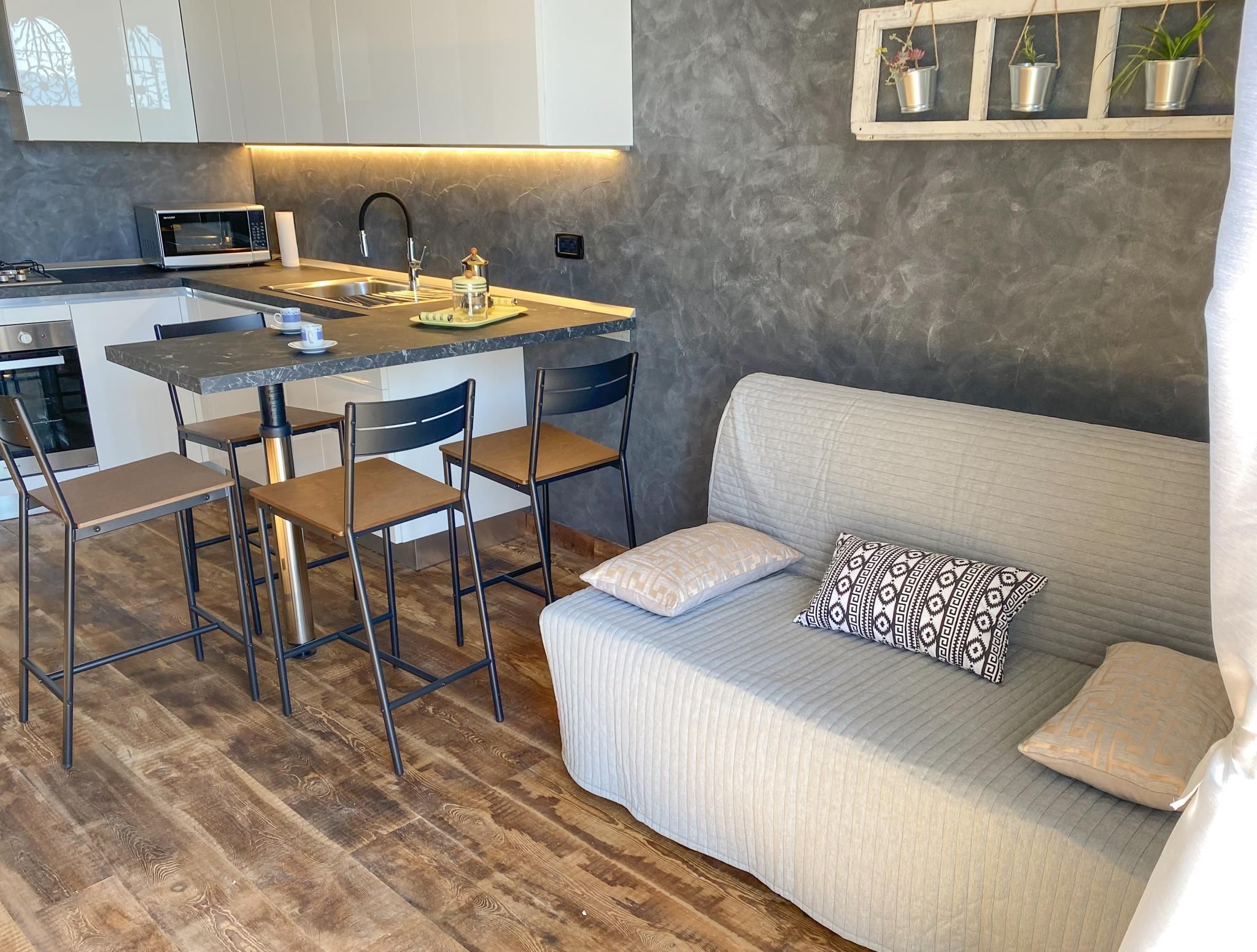 Die Einrichtung ist geschmackvoll und modern mit rustikalen Elementen.