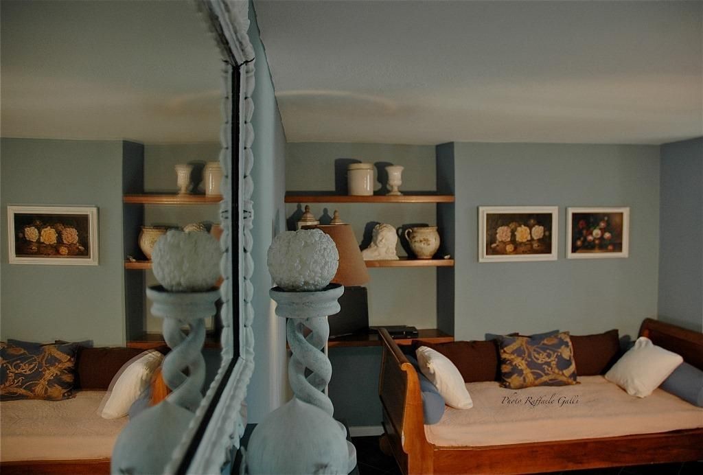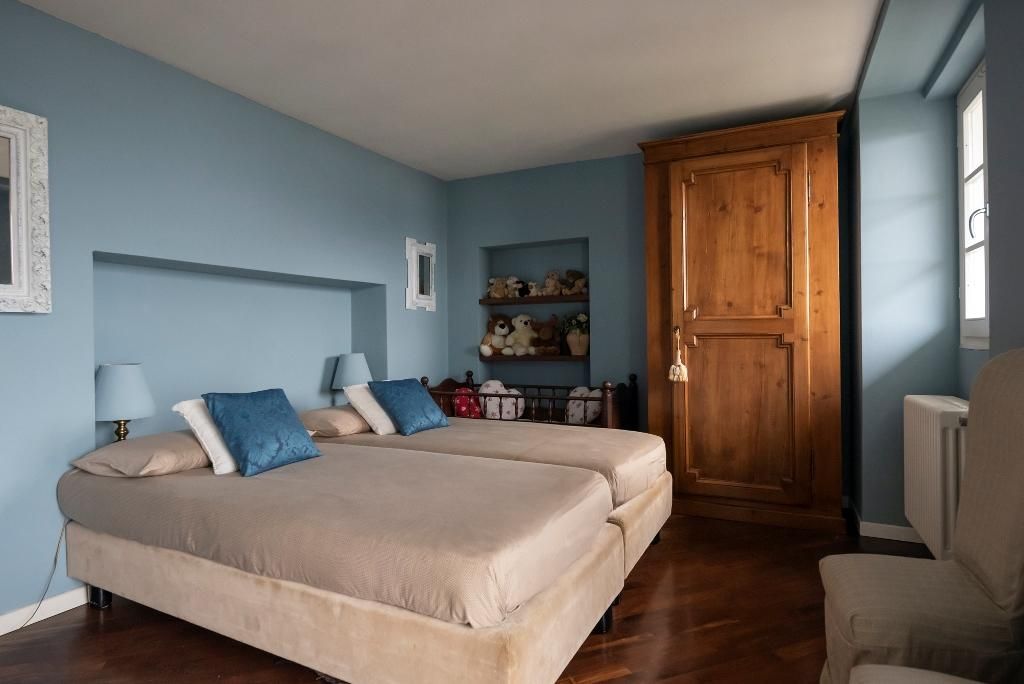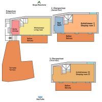 Der offene Treppenaufgang mit Wendeltreppe führt weiter hinauf ins Dachgeschoss, wo Sie ein romantisch gestaltetes Doppelzimmer erwartet – mit Himmelbett, offenem Dachgebälk und ebenfalls einem Balkon mit beeindruckendem Seeblick. Ein großer Einbauschrank bietet zusätzlichen Komfort.