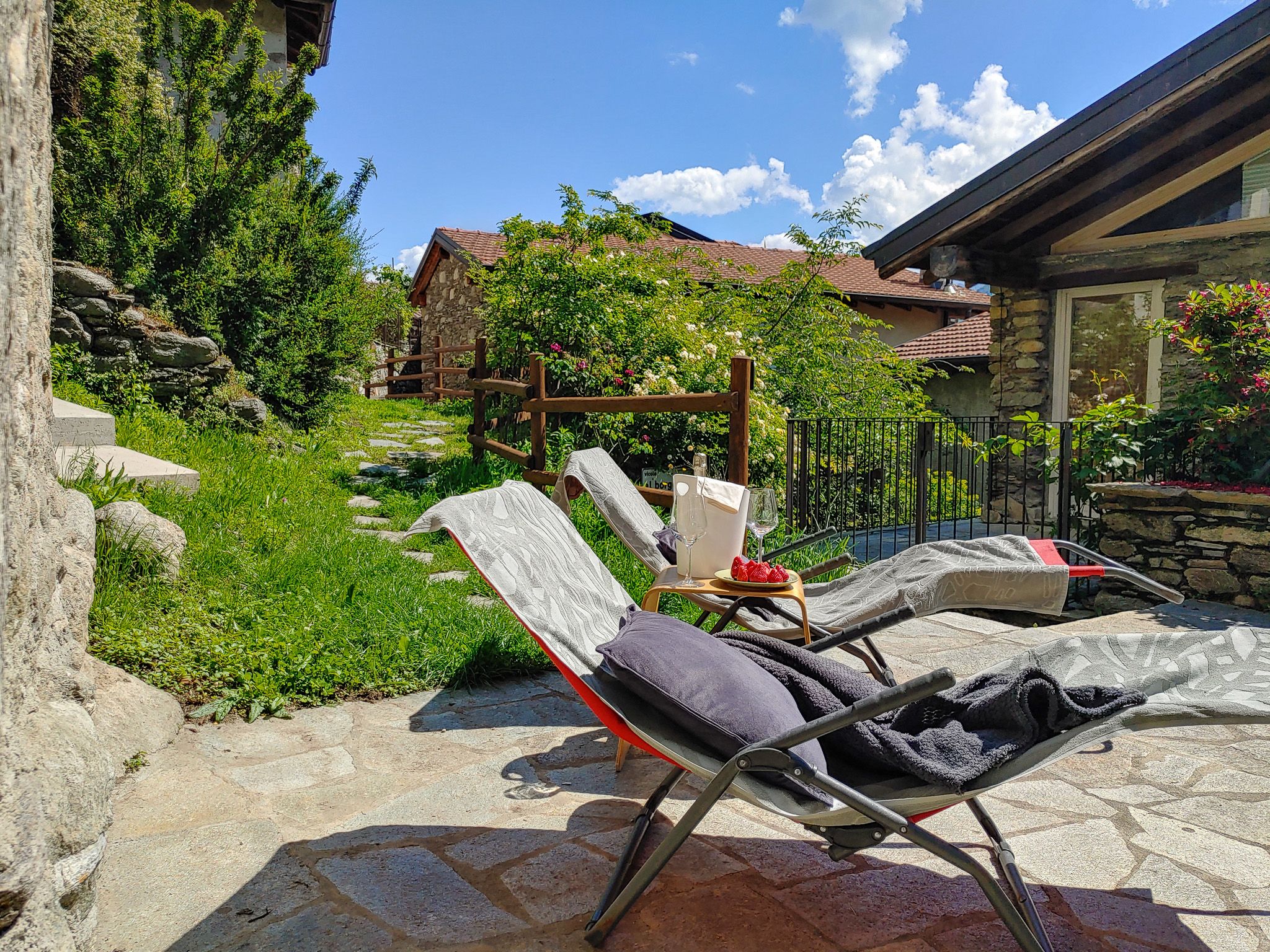 Mit Liegestühlen zum Entspannen. Zudem steht ein Poolhaus zur Verfügung, mit WC, Waschtisch und Dusche.
