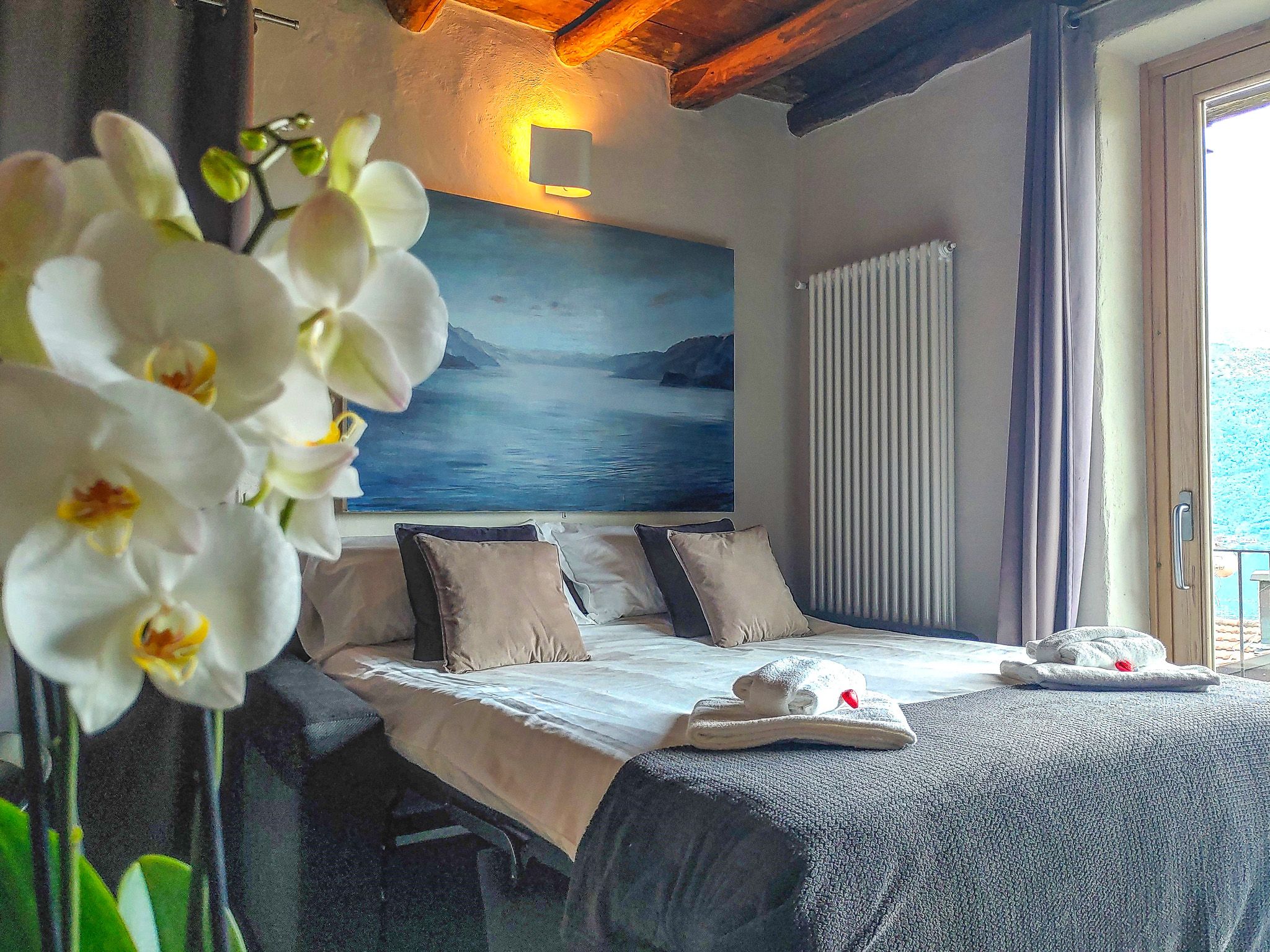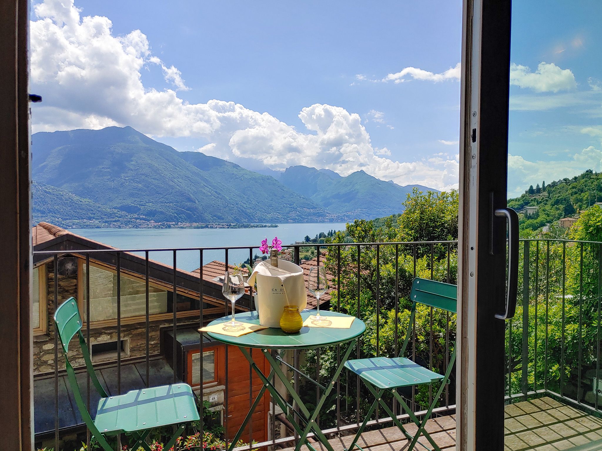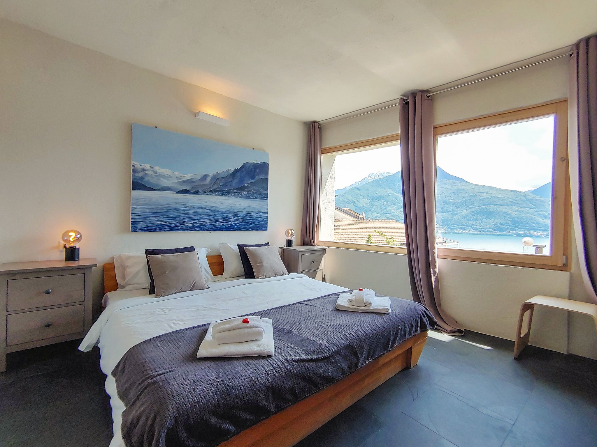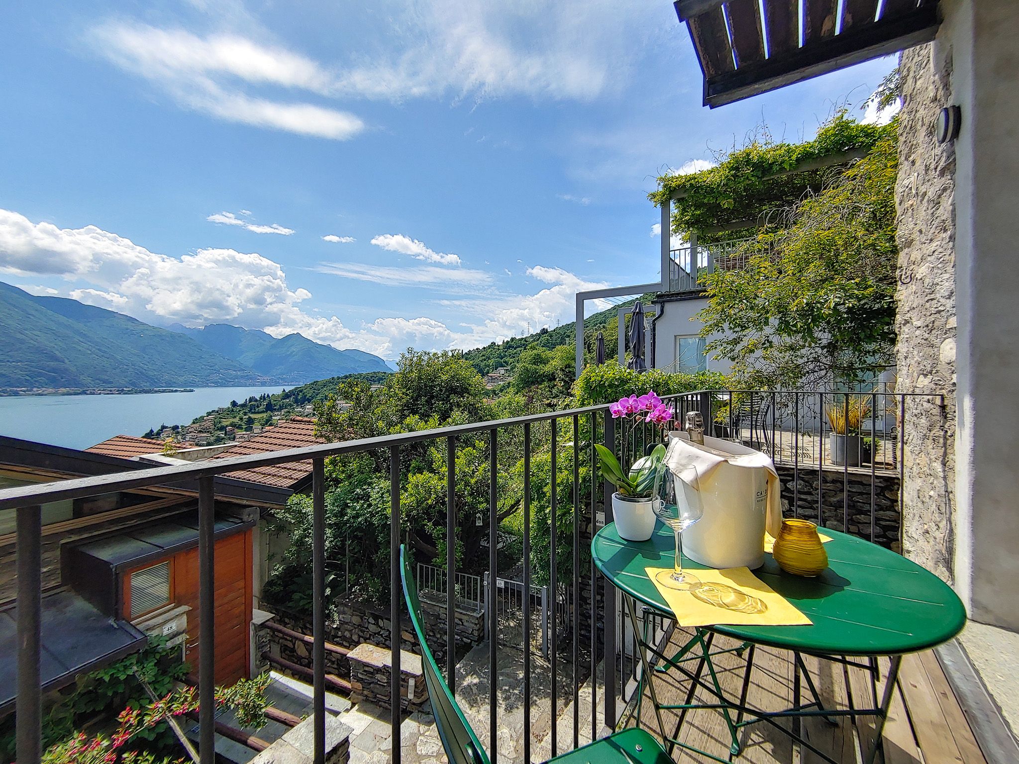 Zur Seeseite ist ein schöner Balkon, der ein beeindruckendes Panorama auf den See und die Berge bietet.