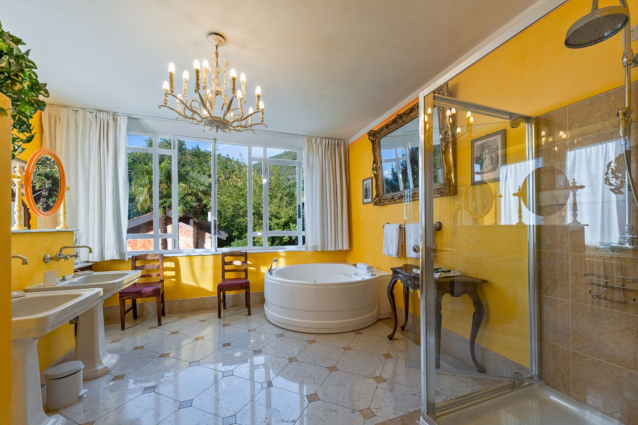 - 1 Doppelschlafzimmer (gelb) mit Seeblick; en Suite Badezimmer mit großer Whirlpool-Badewanne und Dusche