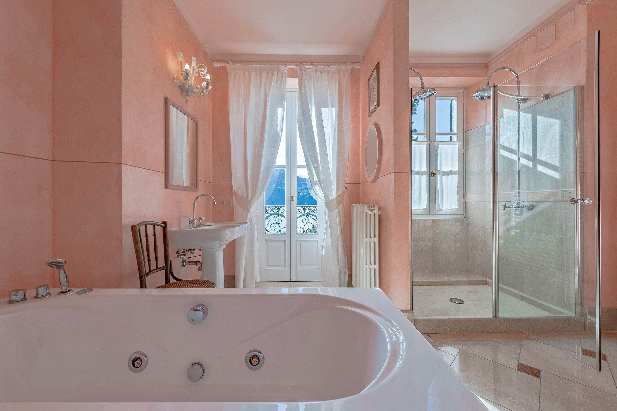 - 1 Doppelschlafzimmer (rosa) mit Seeblick; Bad mit Jacuzzi-Badewanne und Dusche