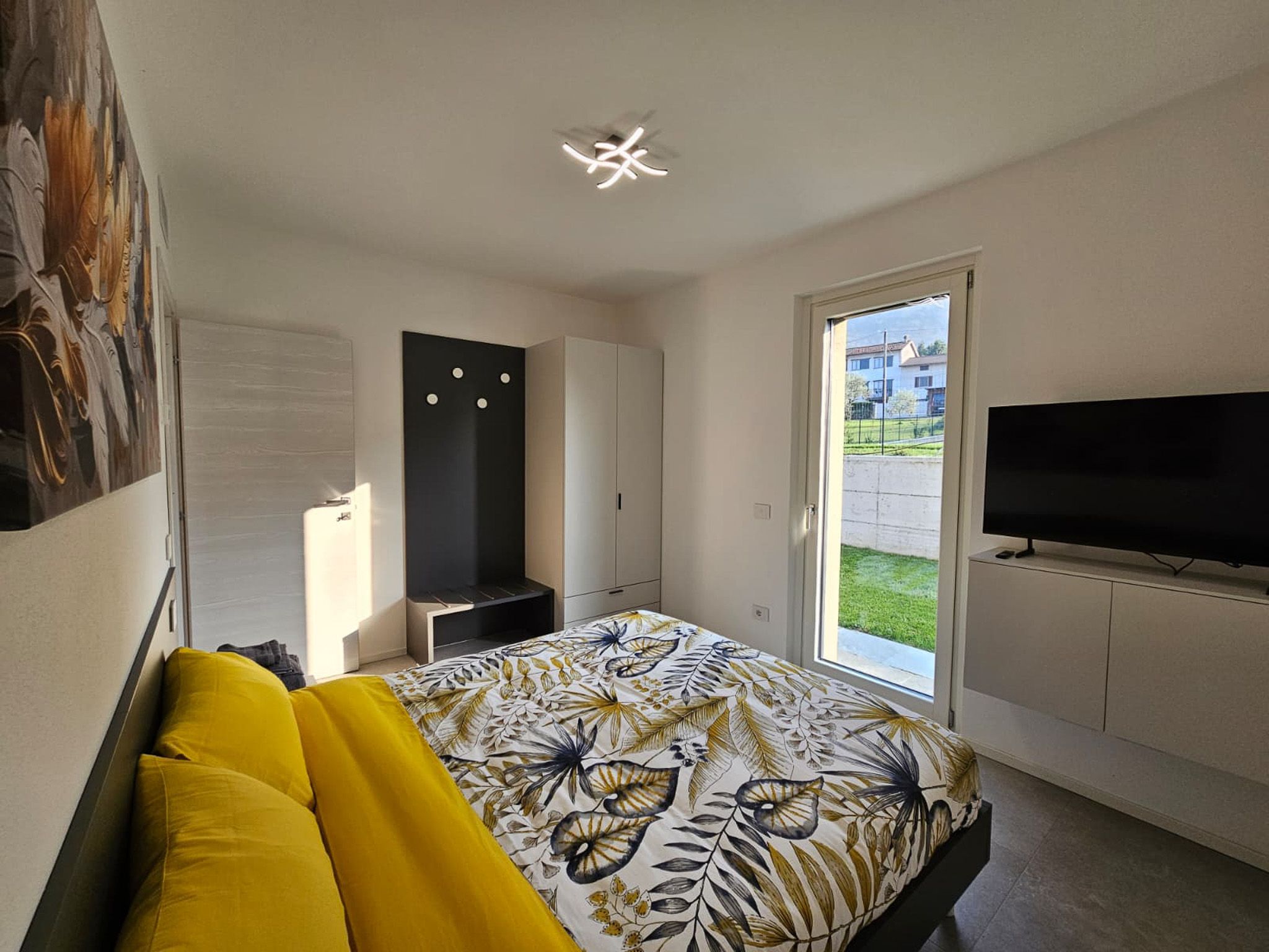 Im Erdgeschoss auf der Bergseite befindet sich ein Doppelschlafzimmer mit Zugang zum Garten sowie ein Badezimmer mit Waschbecken, Dusche, WC, Bidet und Waschmaschine.