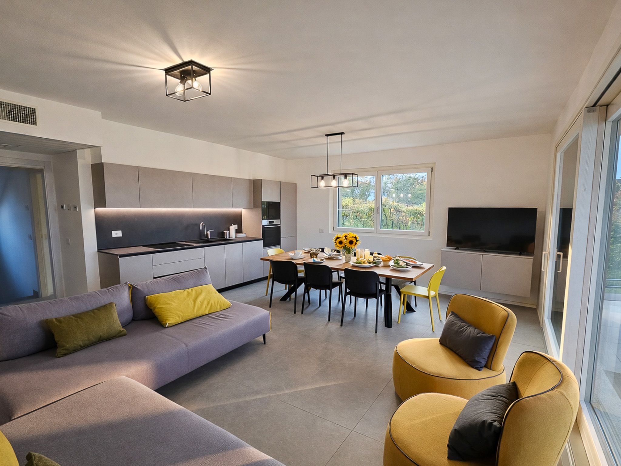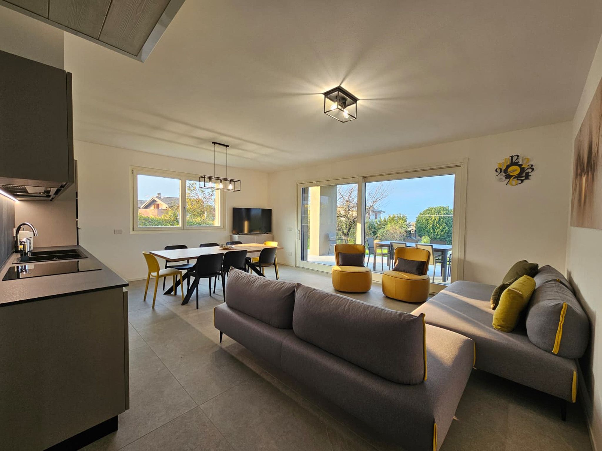 Die Einrichtung der Villa ist neu, hell und modern. Der offene, großzügige Grundriss sowie der helle Steinboden verleihen den Räumen eine besonders angenehme und stilvolle Atmosphäre.