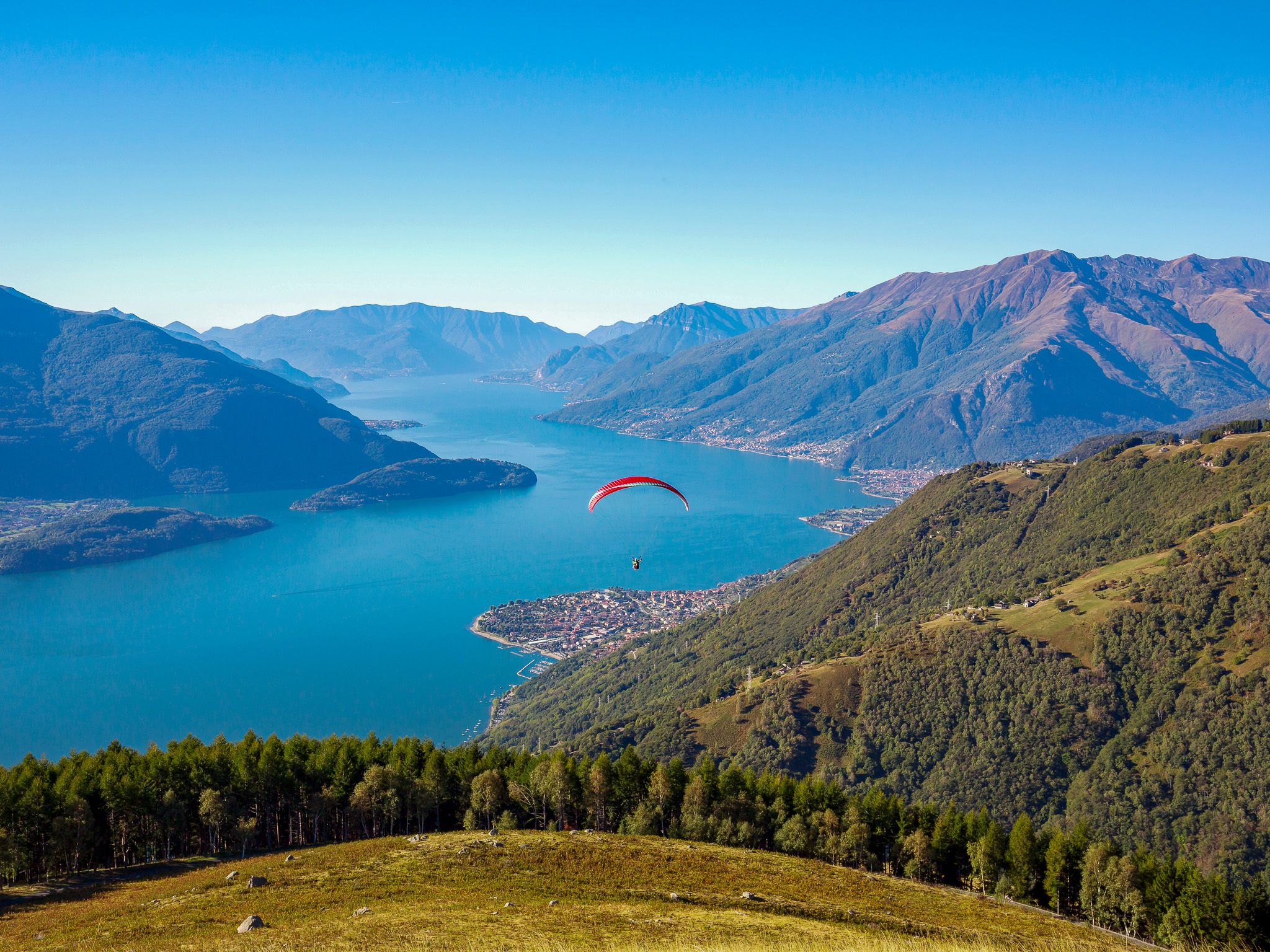 Der Comer See selbst ist ein Paradies für Wassersportler: Ob Windsurfen und Kitesurfen bei idealen Windbedingungen oder entspannte Stunden am Wasser – hier kommt jeder auf seine Kosten. Für Abenteuerlustige bietet die Region zudem spektakuläre Erlebnisse wie Paragliding mit atemberaubendem Blick über See und Berge.