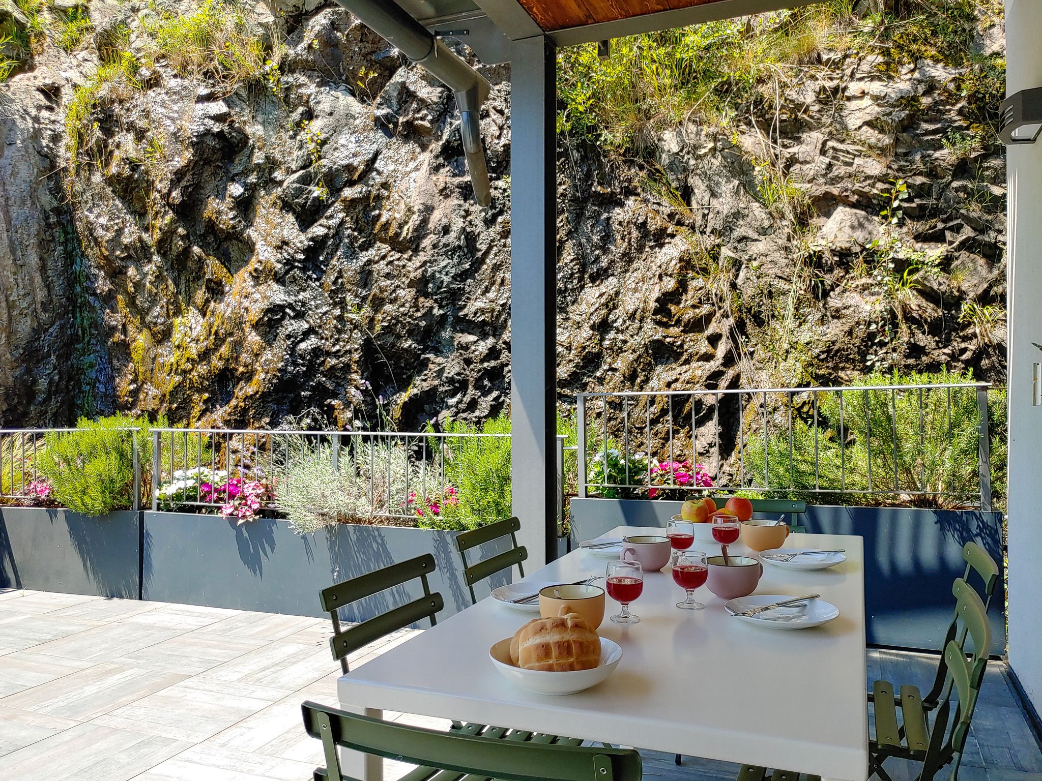 Ihr Urlaubsdomizil ist umgeben von viel Natur: der See, ein Vögelbeobachtungs- und Sportrevier zugleich: Rudern, Kanufahren, Stand-up-Paddeln. Wiesen seeseitig, Felshänge bergseitig, und vereinzelt Wohnhäuser in der Nachbarschaft. Zur Seeseite ist der unterwasserbeleuchtete Pool mit Liegestühlen und das Jacuzzi. Am Seeufer ist der Liegestuhlbereich und der Esstischbereich mit Barbecue. Bootsliegeplatz auf Anfrage. Zur Seeseite ist der Panorama-Balkon mit Überdachung, Esstisch und zwei Liegestühlen.