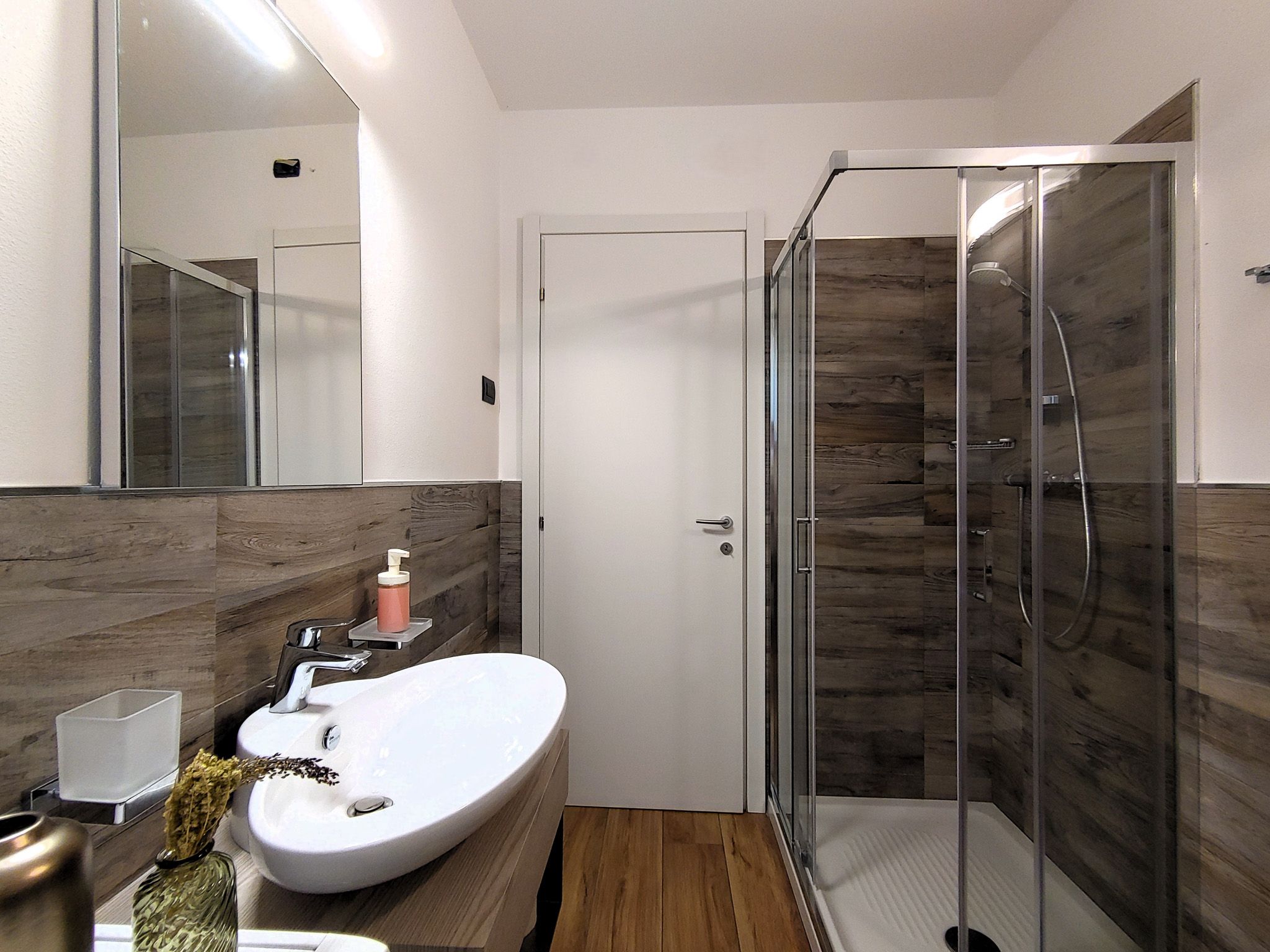 Die Ferienwohnung Vita besticht durch einen hellen und freundlichen Einrichtungsstil, der hochwertige Möbel mit modernem lombardischen Flair kombiniert. Die Böden sind mit stilvollen Holzdesign-Fliesen ausgelegt.