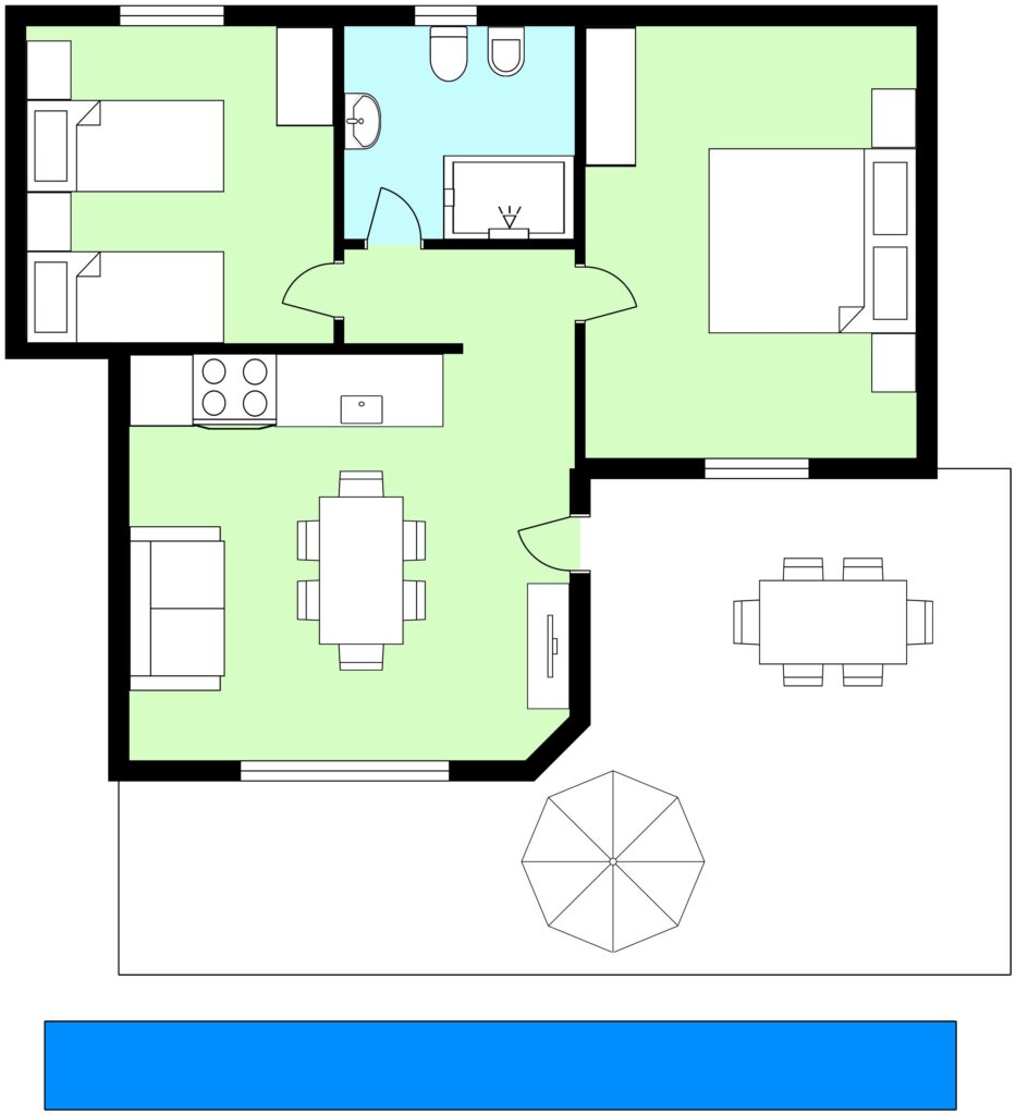 Double bedroom, twin bedroom, double sofa bed, shower-bathroom