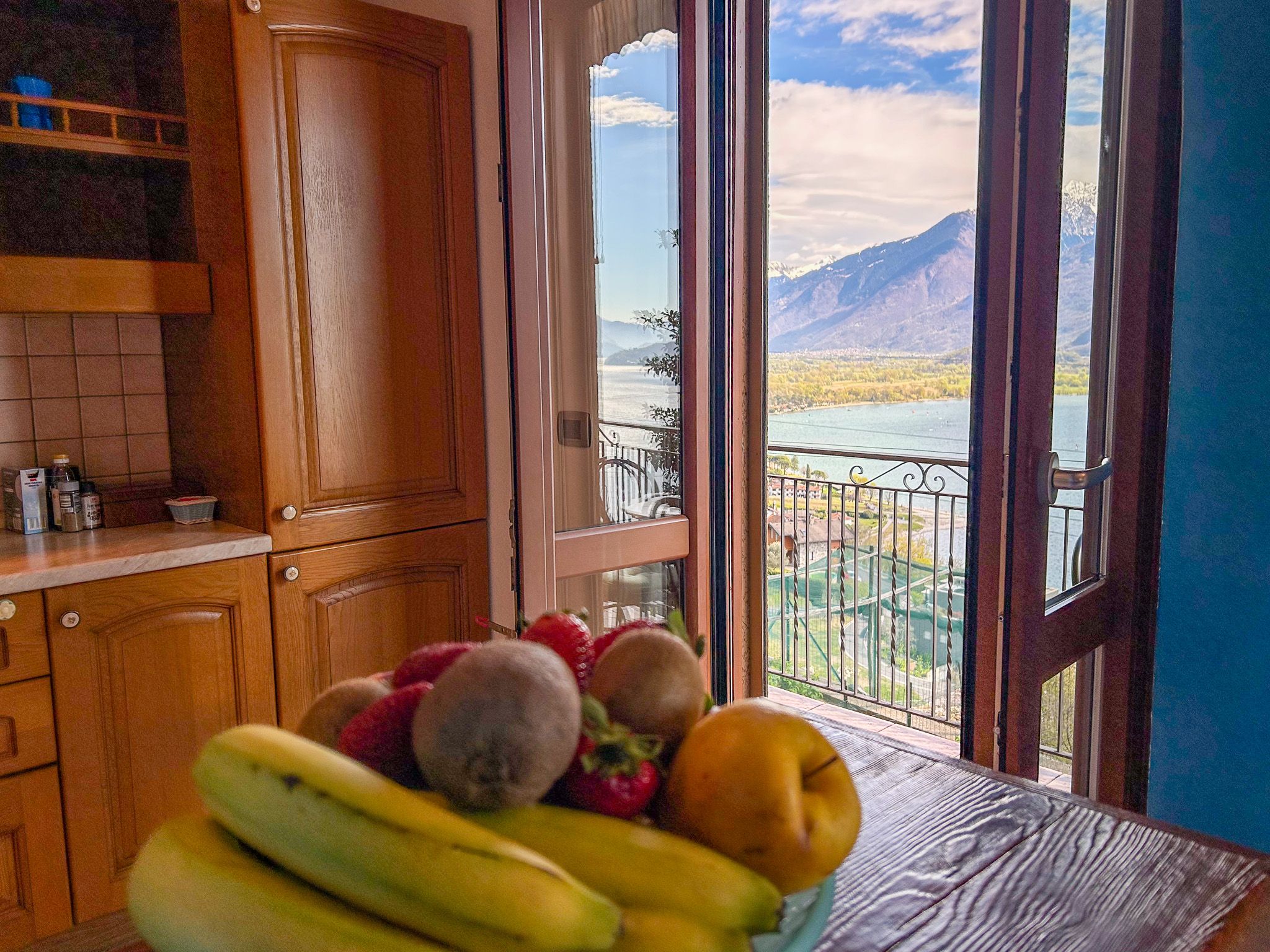 The separate kitchen on the lake side offers plenty of space and is open to the living area and also has access to the balcony with panoramic lake views.