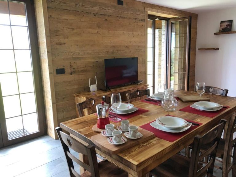The house, located at an altitude of 1,100 metres, has two holiday apartments and is situated in a secluded location on a hill, from where you can enjoy views of the surrounding mountains.
