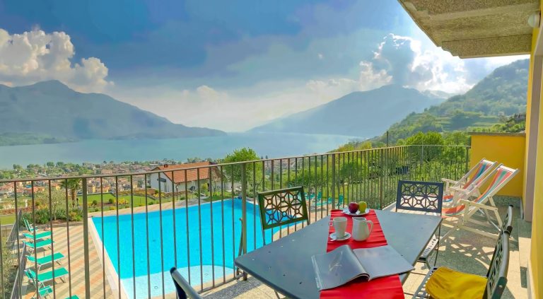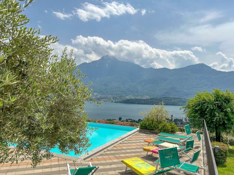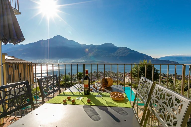 La Collina consists of two holiday homes with apartments of varying sizes and a pool bungalow. The two holiday homes are offset to the side and offer magnificent lake views. All apartments have external entrances and a private outdoor area facing the lake, which, thanks to the sunny hillside location, exudes pure holiday bliss. All balconies and terraces are spacious and inviting, with dining tables and deck chairs. The names of the holiday apartments are inspired by fruits and olives that thrive here in the mild climate.