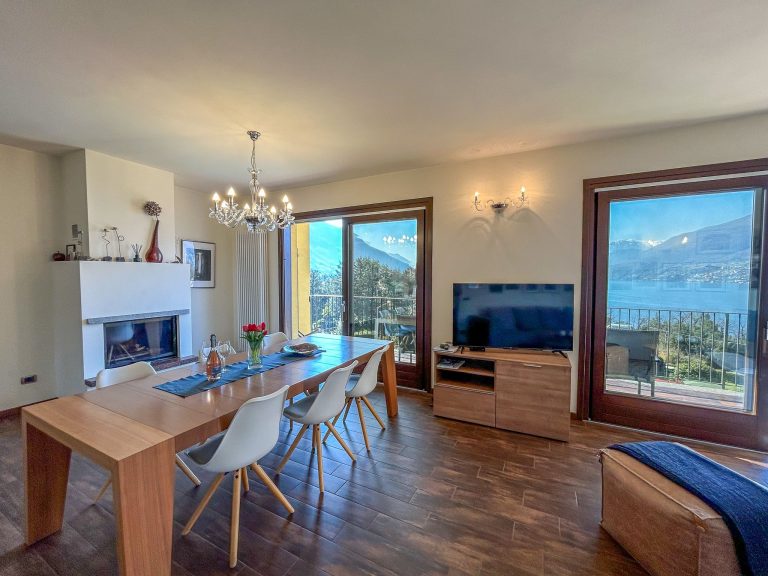 The holiday villa “Mimosa,” with two apartments, is nestled in a paradisiacal hillside location, just 250 meters from the lake, and offers breathtaking views stretching far to the south and the surrounding mountains. The villa is surrounded by lush nature and beautiful villas and houses. The lakeside garden is perfect for sunbathing. A highlight is the rock garden surrounding the house, planted with palm trees and other southern flora. Adjacent to the garden, which features a pool and barbecue, is a cozy lounge with a fireplace and rustic seating area, offering ample space for everyone, board games, and card games – ideal for private family gatherings by prior arrangement.