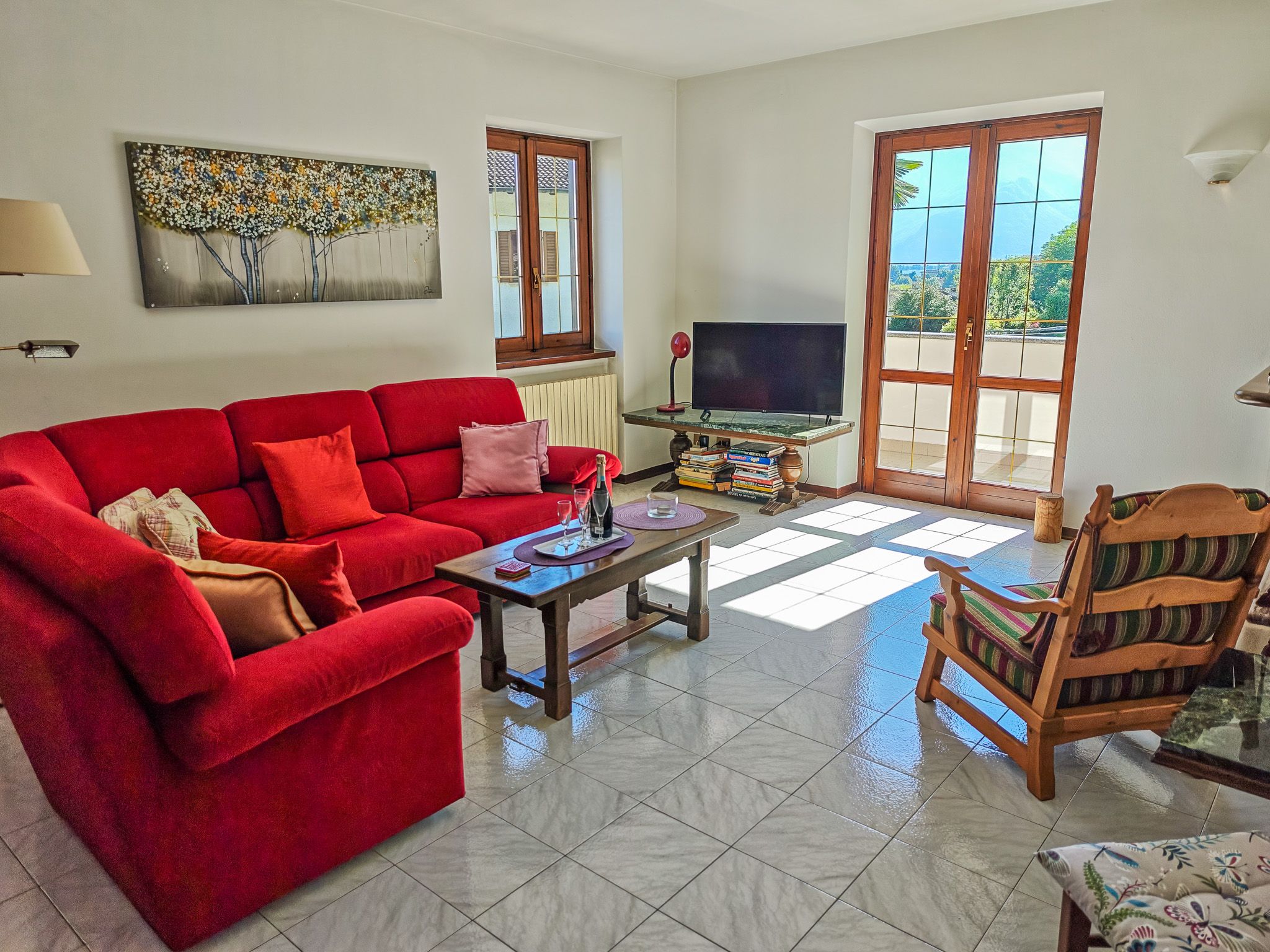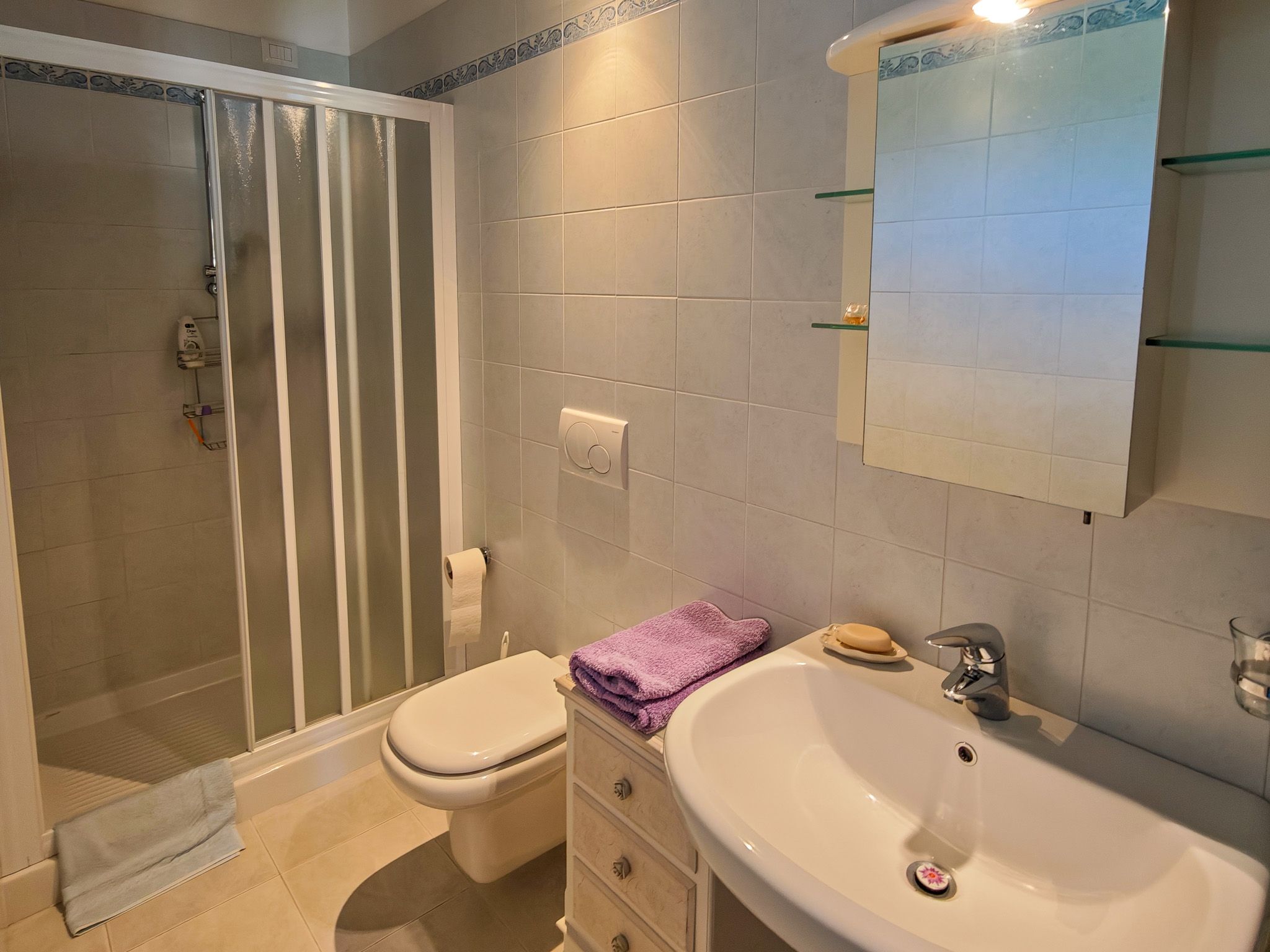 1 apartment, divisible into 2 apartments, 2 floors. 1st floor: three bedrooms, bathroom, access to the terrace and lake view. 2nd floor: living room, kitchen, bathroom and 2 bedrooms. Centrally located, quiet, near Como with lake view and double garage. Furniture available upon request. Built in 2010, energy class D, methane heating, self-contained.
