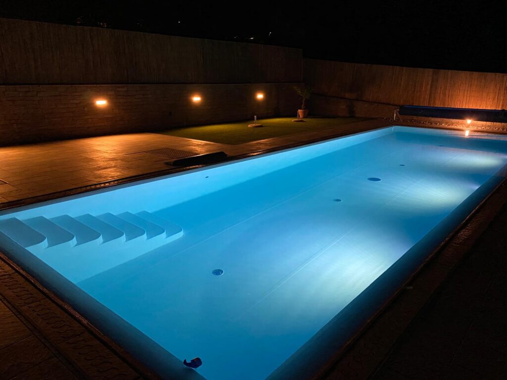 Mediterranean elements such as the light tiled floor, antique solid wood furniture, and custom carpentry have been combined to create a solid and comfortable setting.