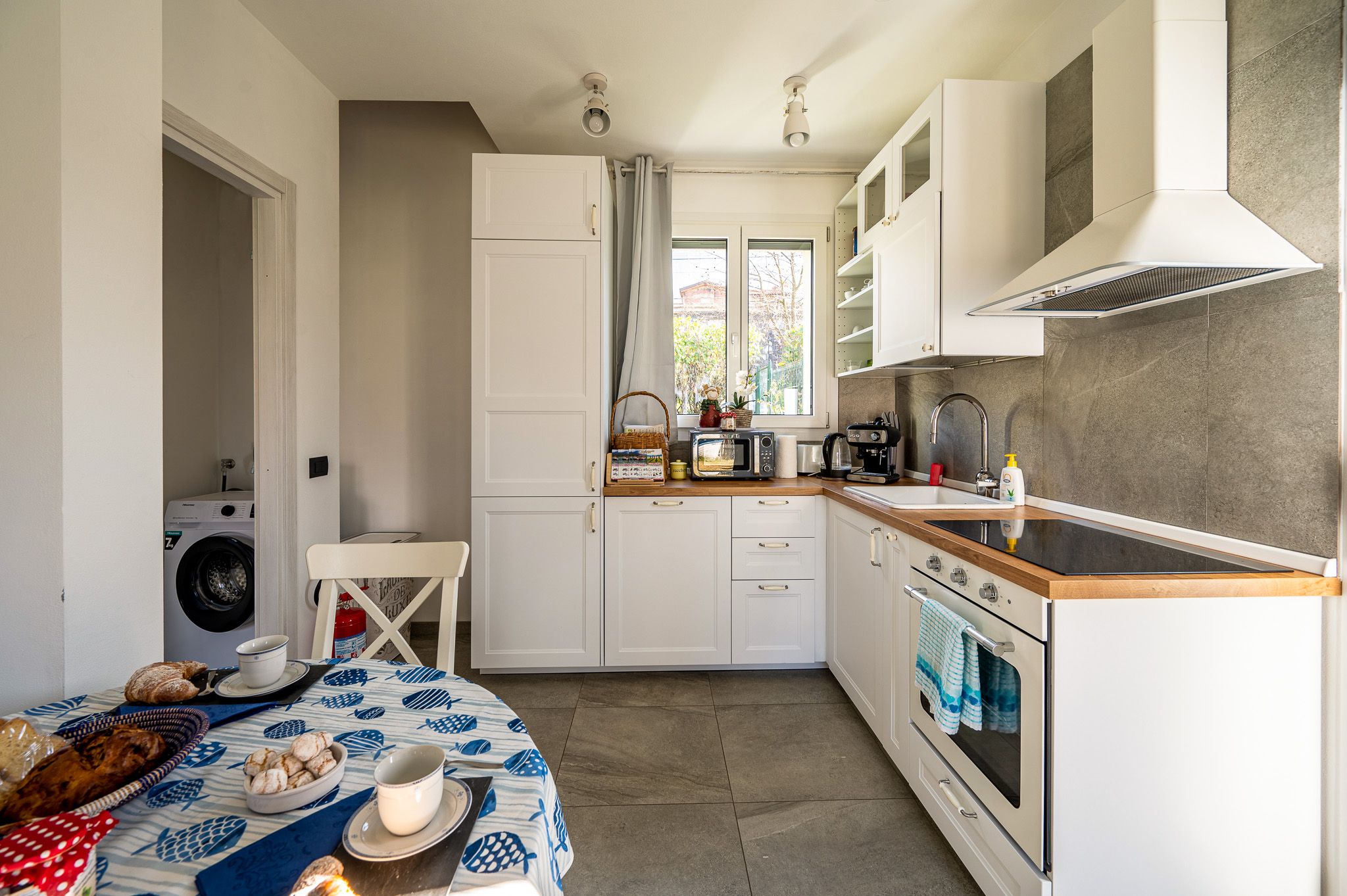 The garden gate leads into the private furnished and fenced garden. With typical Italian neighbourhood: leisure and sports services, restaurants, cafés and country and town houses- all within walking distance.
