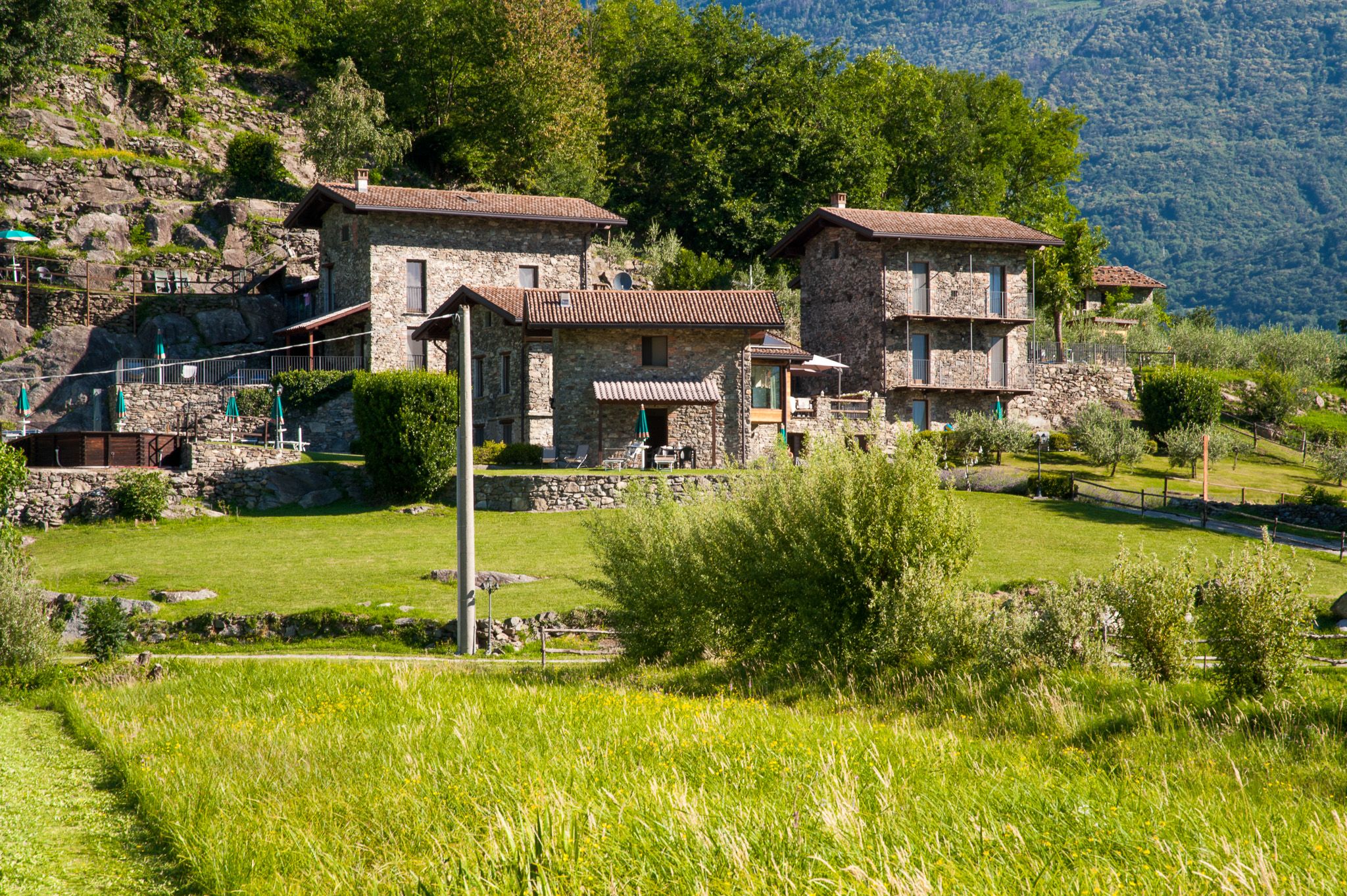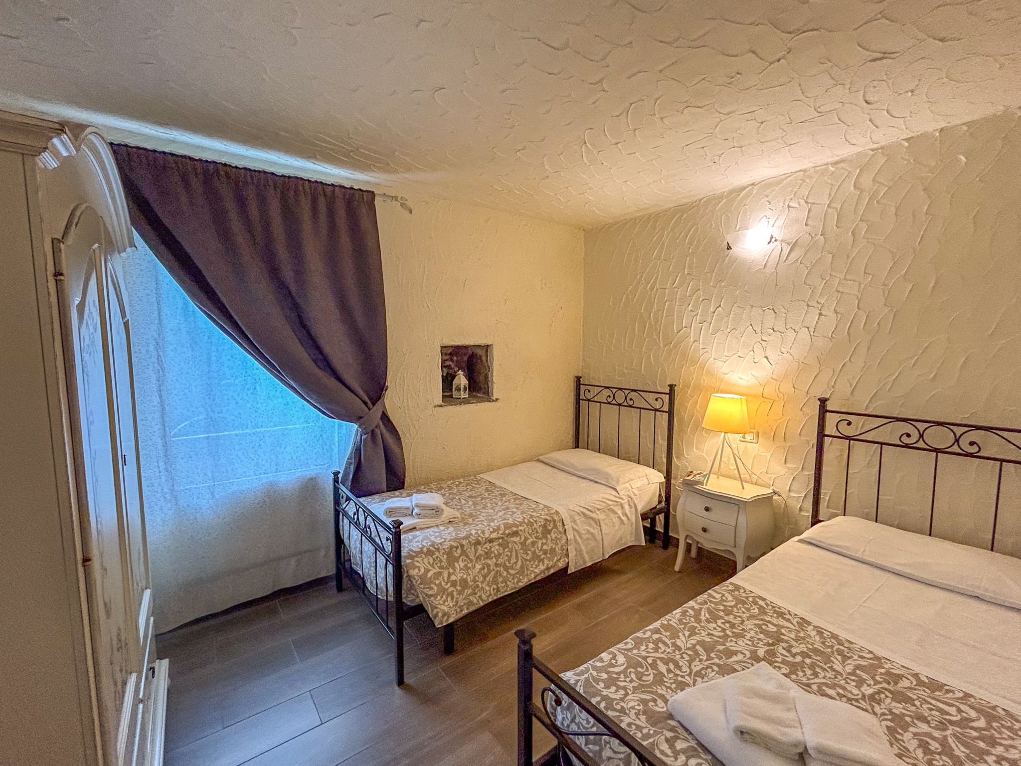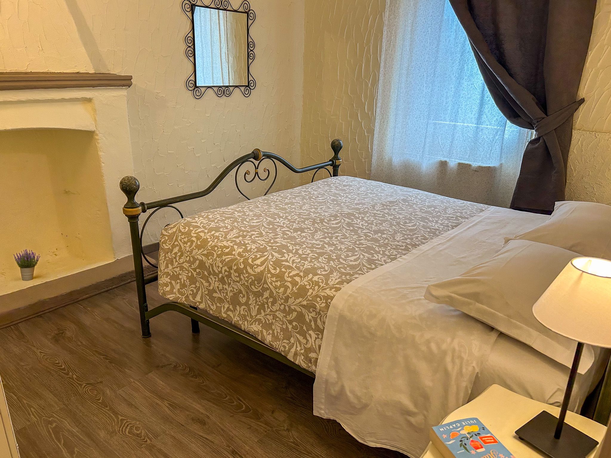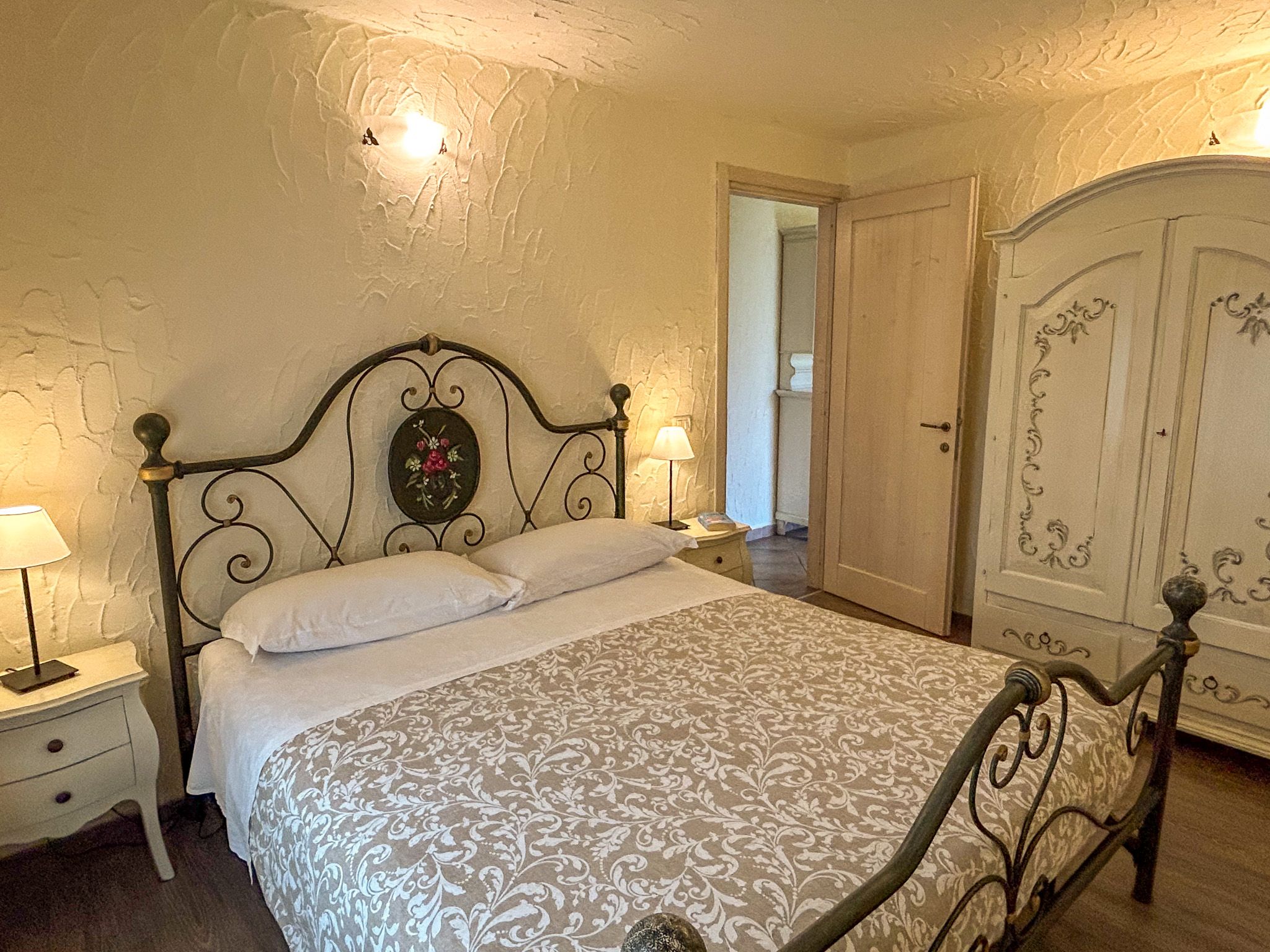 In the bedrooms and bathroom, the natural stones used for the construction of the house have been left partly visible and form a harmonious unit with the rustic furnishings.
