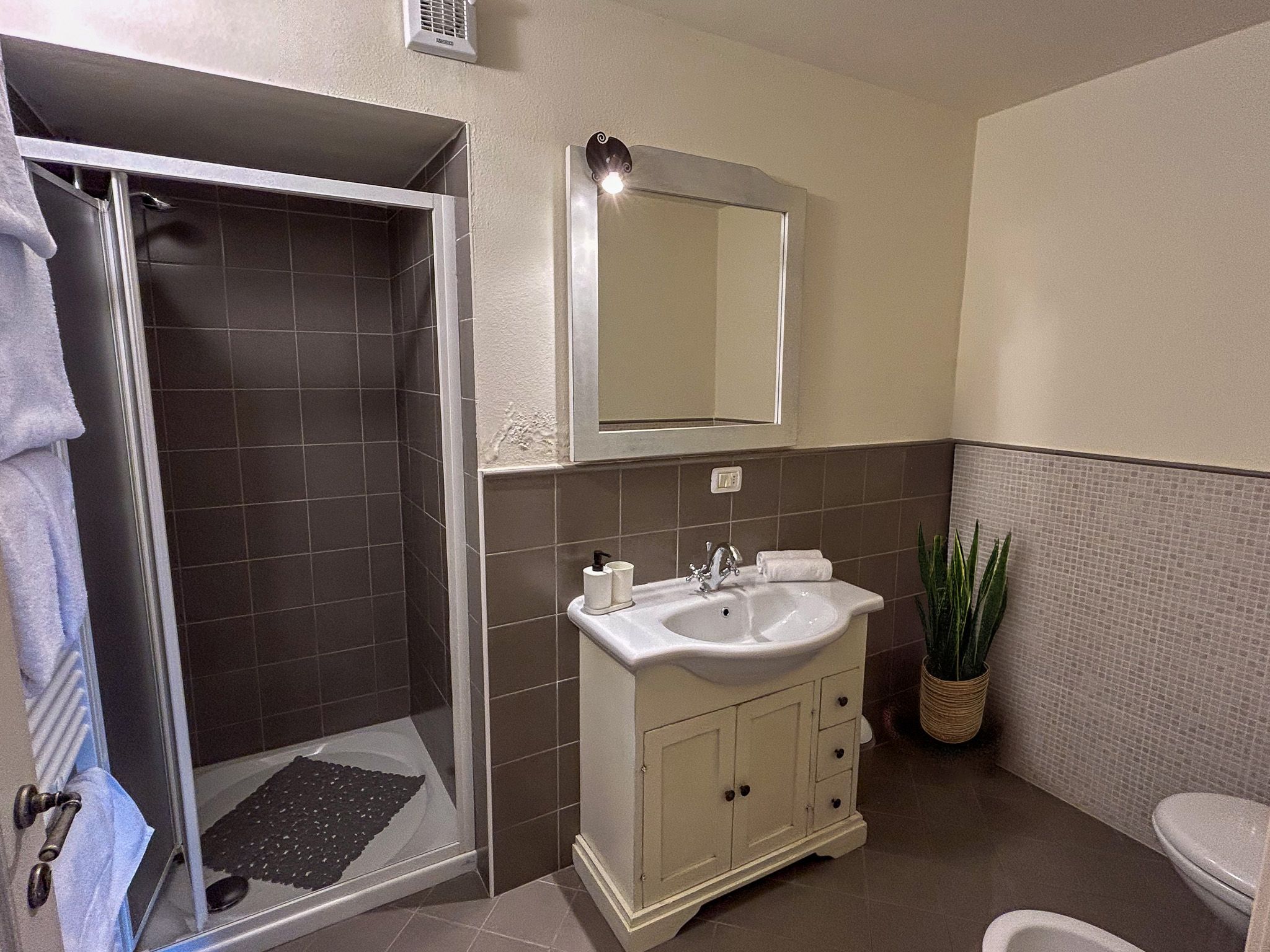 Flat Giglio: You enter the pretty ground floor flat in the granny annexe via the garden and the furnished, covered terrace.