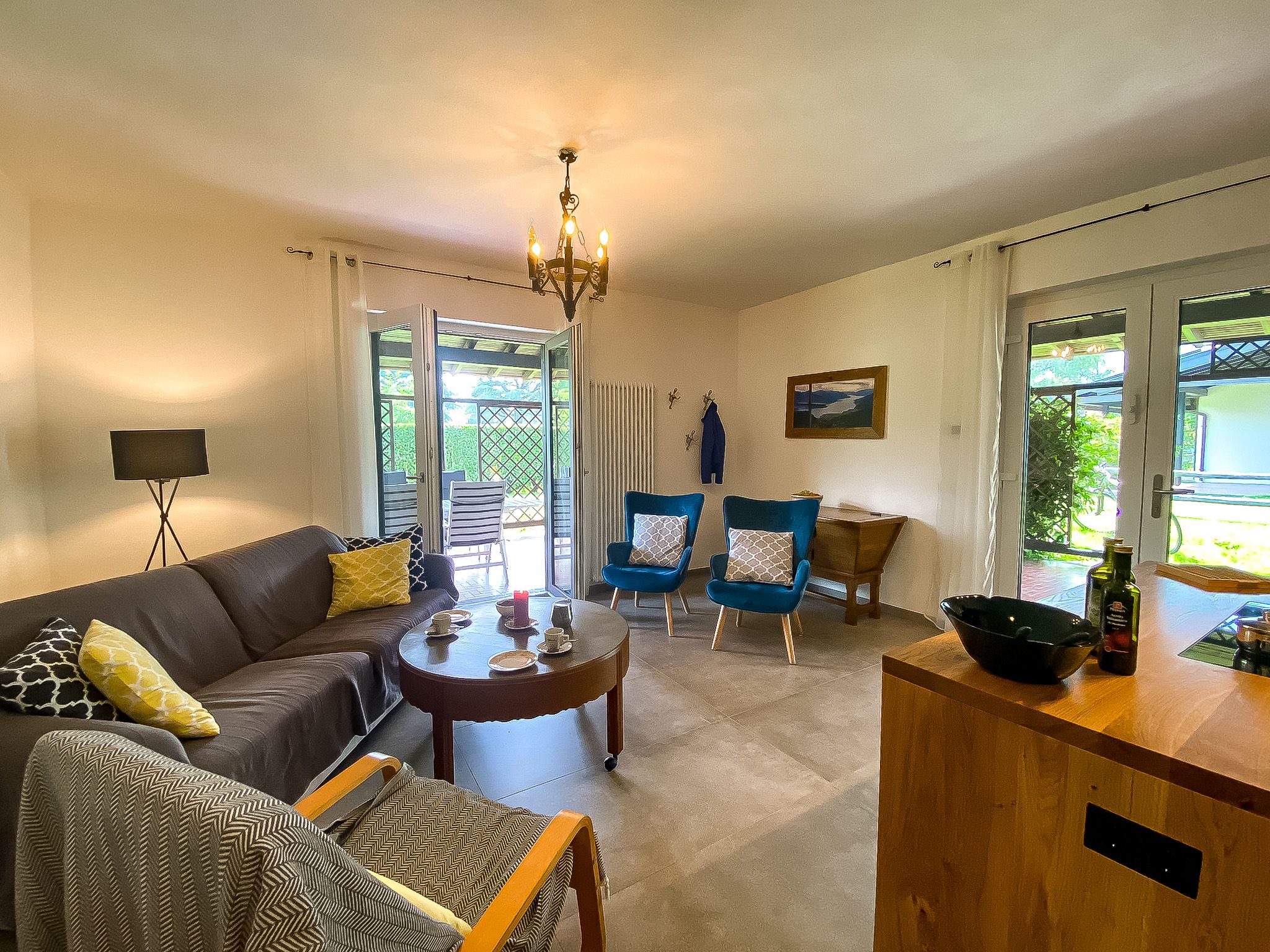 The holiday flat is modern and tastefully furnished with tiled floors.