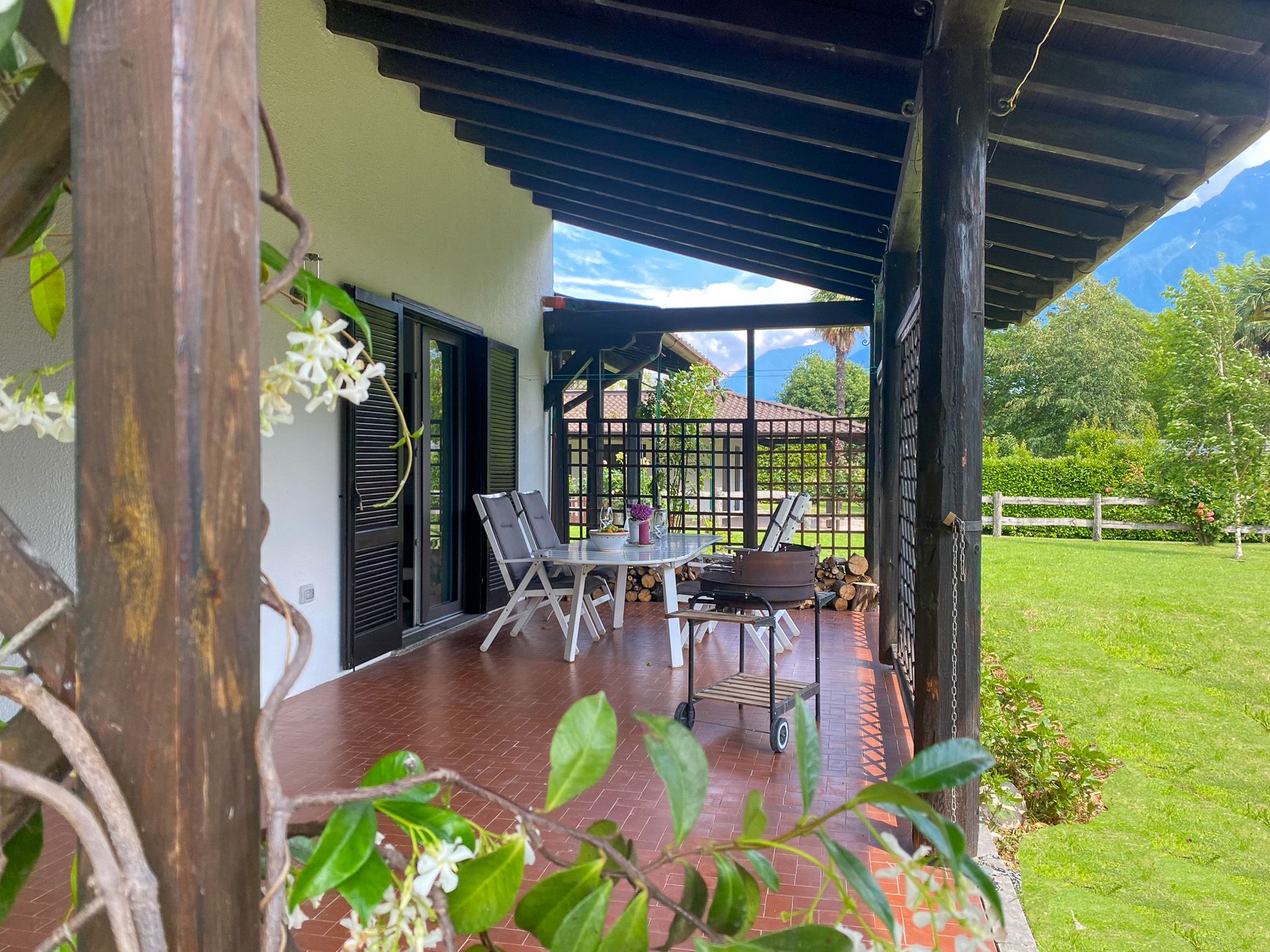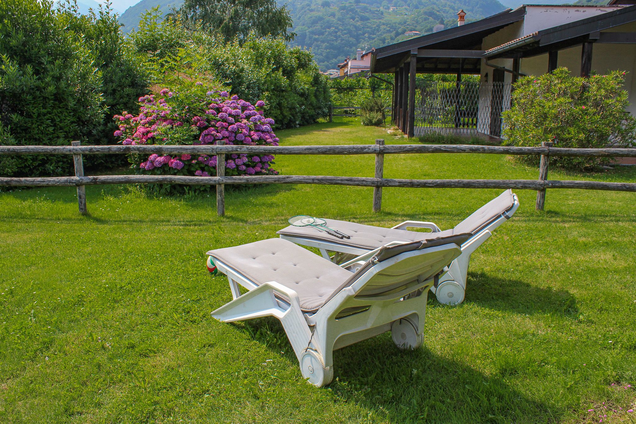 The country house - garden - holiday flat Lago Lodge is located at the upper tip of the lake in a sunny position only approx. 80 m from the lake on the headland of Domaso, a popular holiday and fishing village on the western shore. A cosy holiday flat with its own garden and exclusive house entrance with a large garden with sun and play lawn, and a large covered terrace all around - the