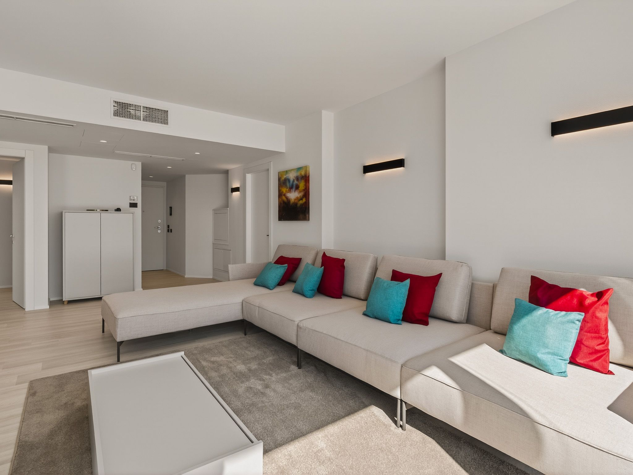 Tutte le stanze sono dotate di aria condizionata e garantiscono così un comfort ottimale in ogni stagione. L'appartamento affascina per la sua pianta luminosa e aperta, i pavimenti in parquet di alta qualità e l'accesso diretto dalla zona giorno alla terrazza con una fantastica vista sul lago: un luogo rilassante per godersi l'atmosfera speciale del Lago di Como.