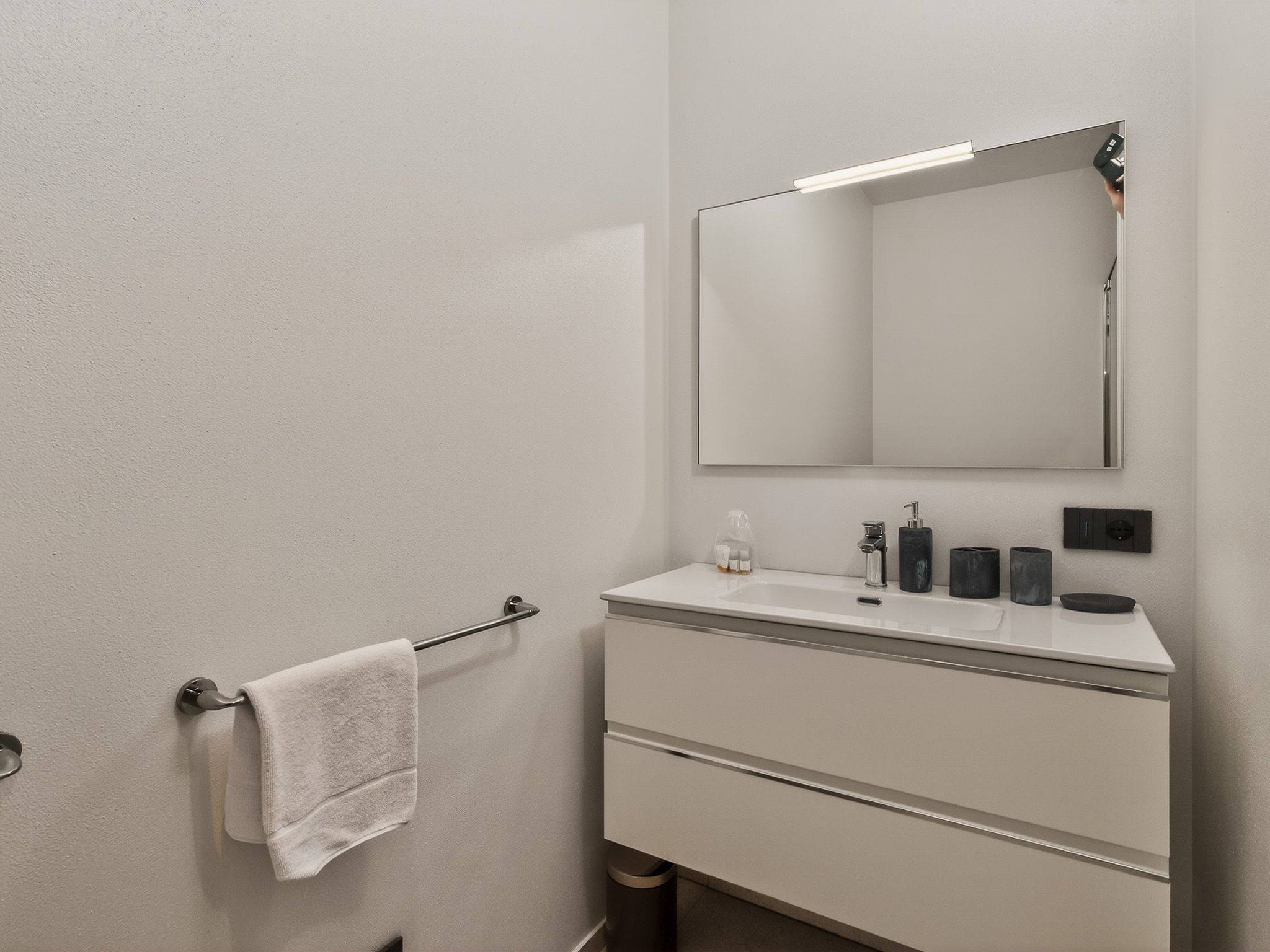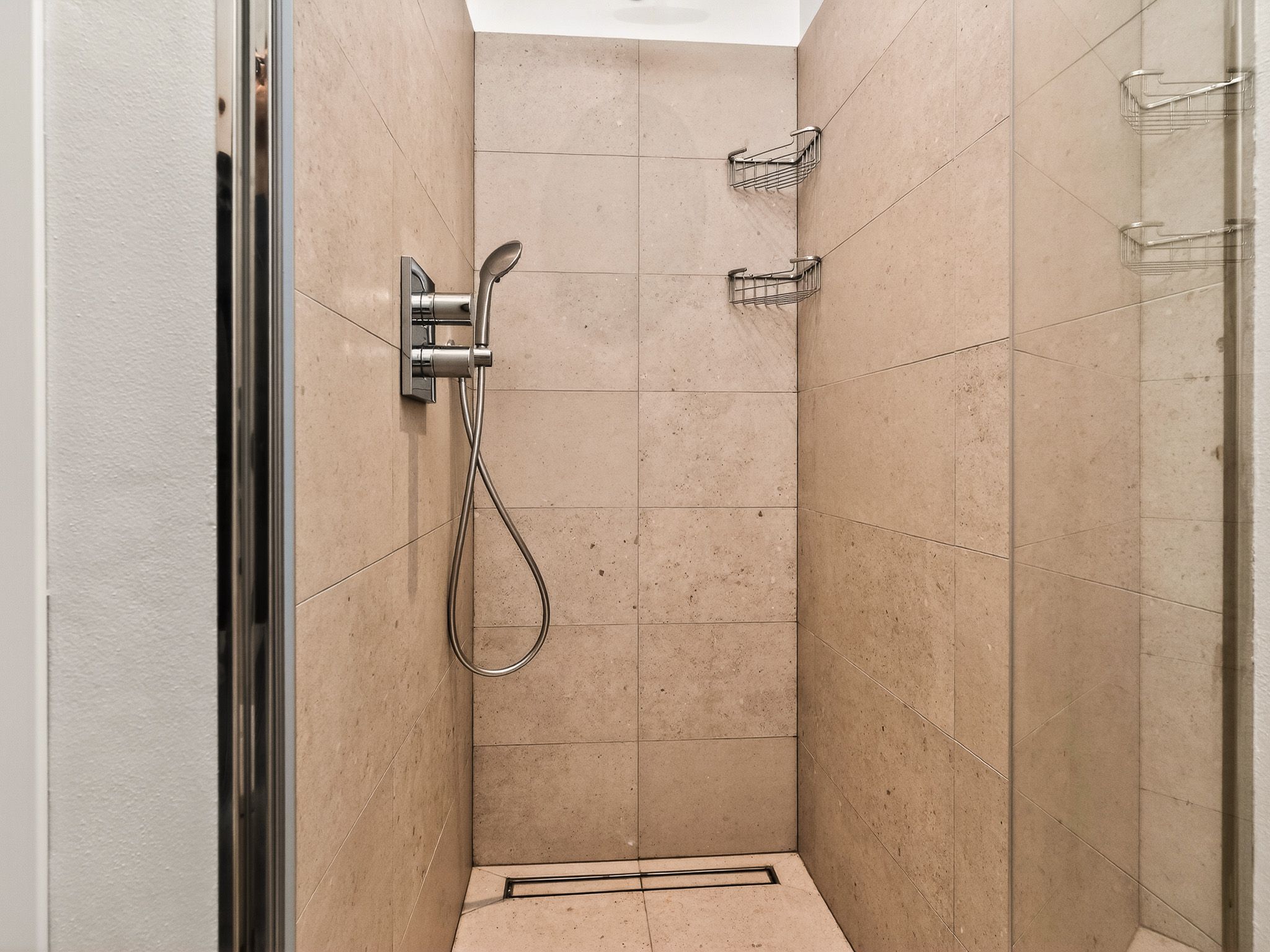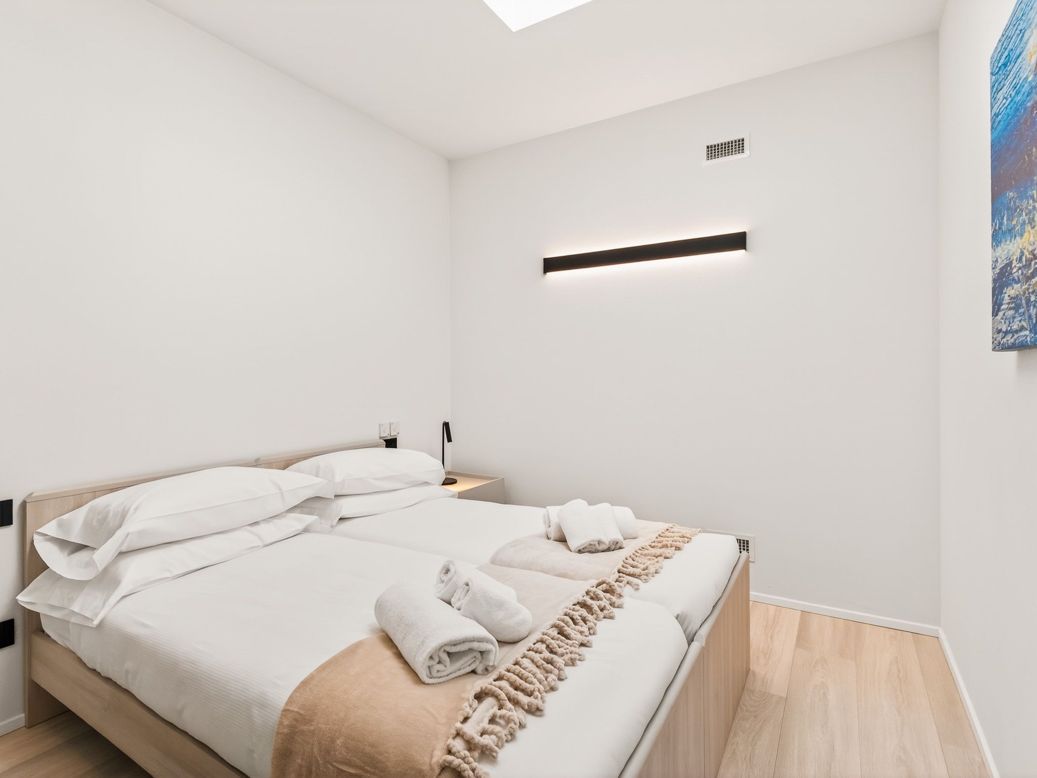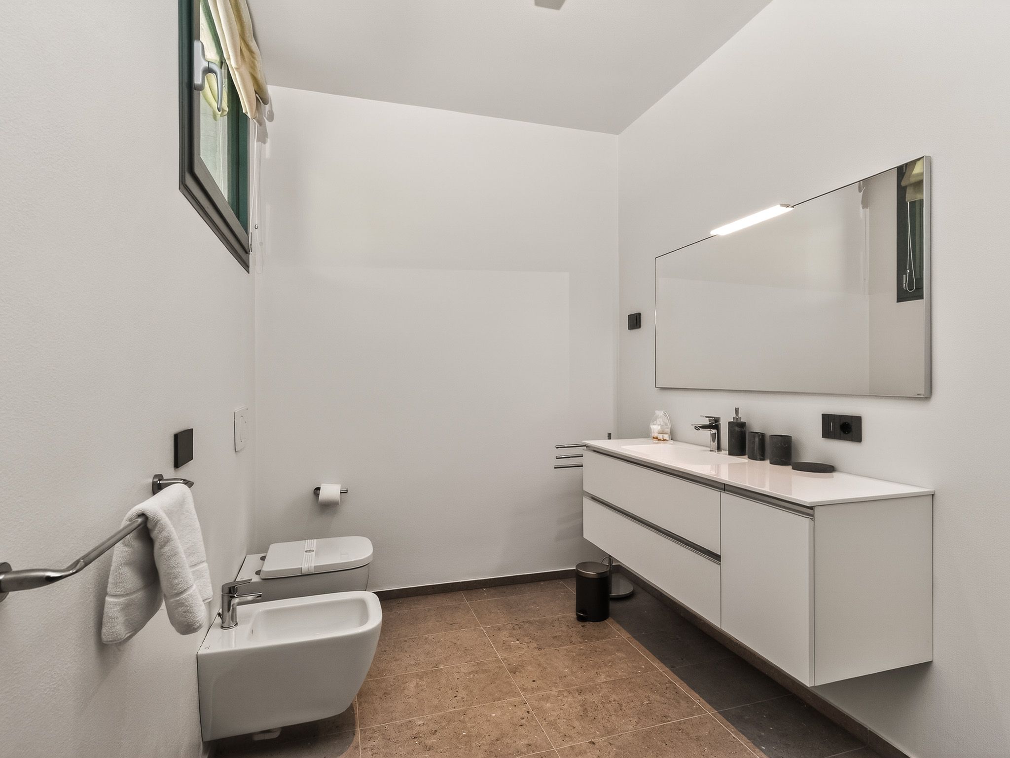 La camera da letto principale è dotata di letto matrimoniale e di un elegante bagno en suite con lavabo, doccia, WC e bidet. Una seconda camera da letto matrimoniale e una camera con due letti singoli offrono spazio sufficiente per la famiglia o gli amici. Il secondo bagno dispone di lavabo, doccia, WC e bidet.