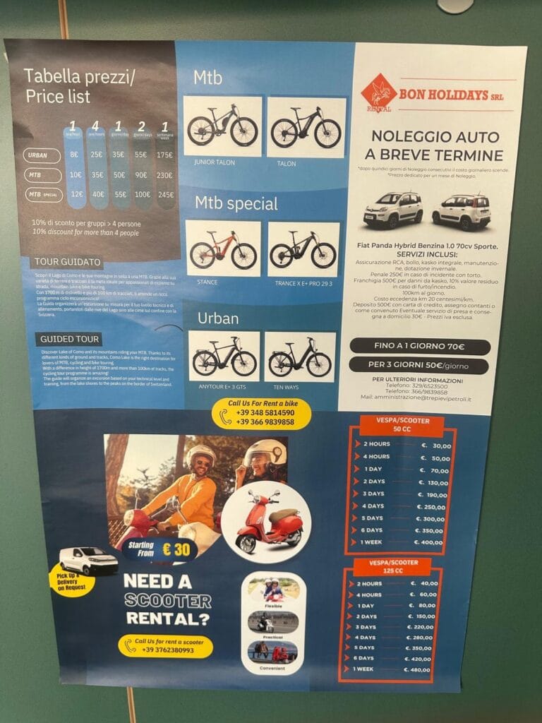 Servizio di noleggio e-bike, mountain bike e vespe a Dongo sul Lago di Como