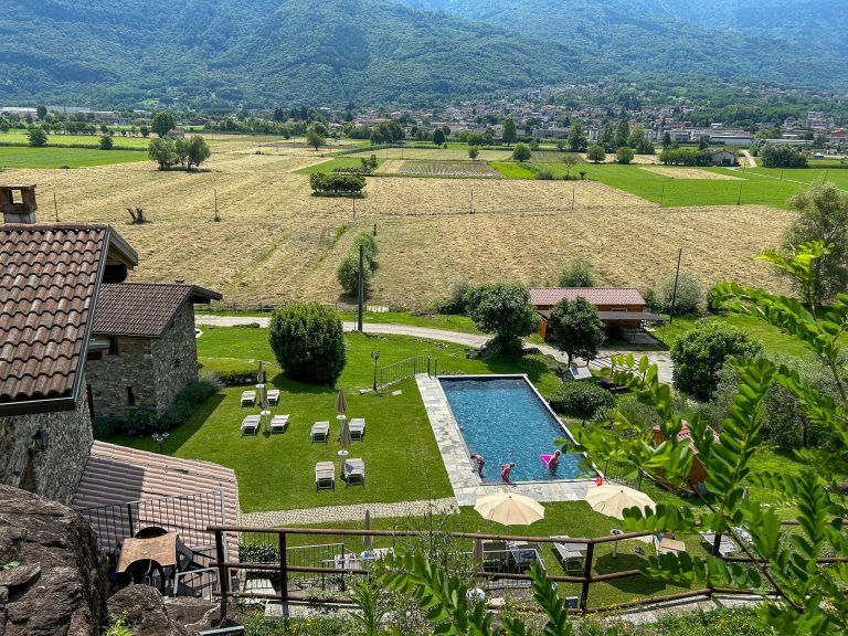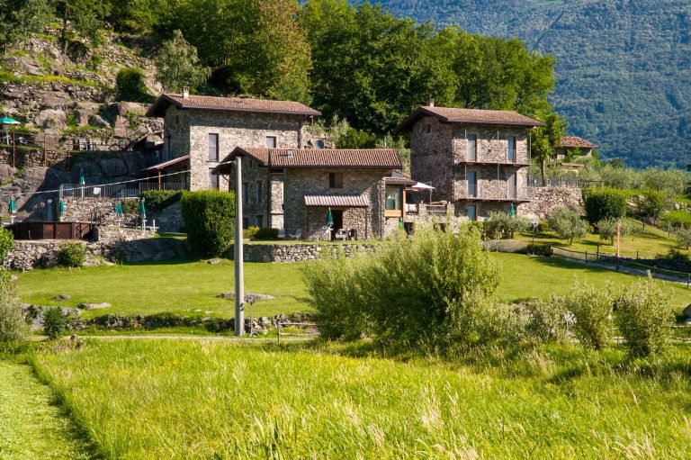 Un gioiello, restaurato con metodi di costruzione ecosostenibili e perfettamente integrato nello splendido paesaggio della riserva naturale del Pian di Spagna. Situato alla periferia di Colico, all’estremità superiore del lago. Borgo Erbiola sorge in cima a un promontorio roccioso, tra campi verdeggianti, vigneti e colline rocciose fiorite, offrendo viste mozzafiato a sud sulla piana di Colico e verso il Monte Legnone (2.610 m). Composta da quattro case vacanze in pietra, disposte a terrazze sul pendio a diverse altezze, la proprietà vanta una magnifica vista dall’alba al tramonto. Ogni giardino, balcone e terrazza è posizionato individualmente, permettendovi di scegliere tra sole e ombra, un giardino roccioso, un prato o una terrazza con piscina. I lettini prendisole sono disponibili sia a bordo piscina che nella vostra casa vacanze. Sarete a breve distanza in bicicletta o a piedi dal Lago di Como e dalla cittadina lacustre di Colico. La Valtellina e la Valchiavenna sono proprio a due passi da casa!