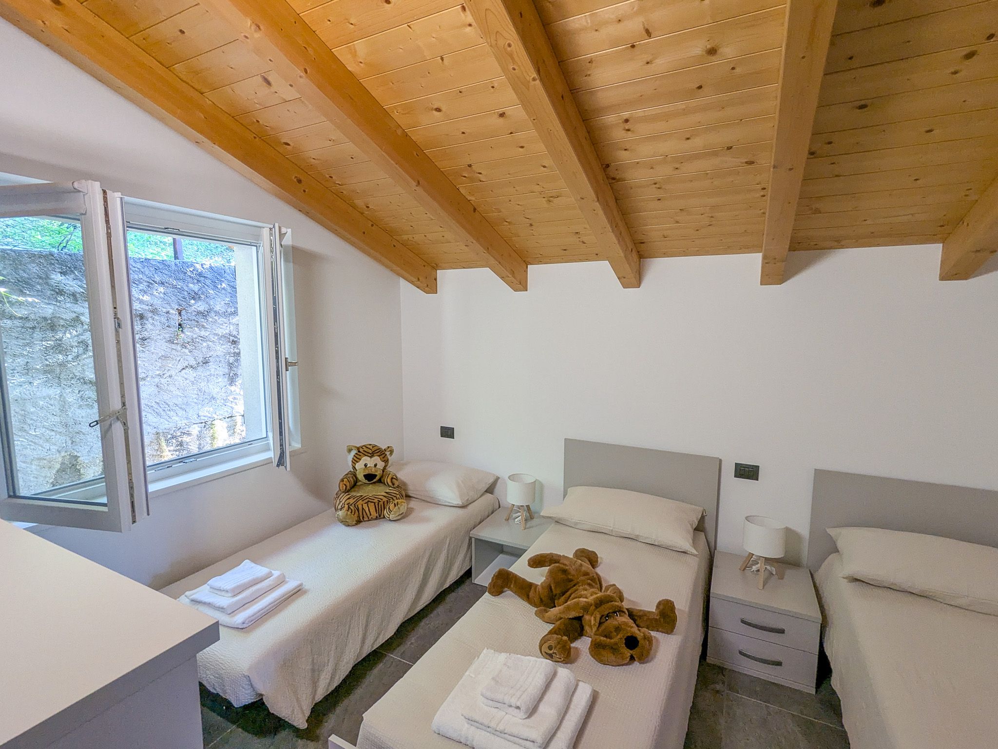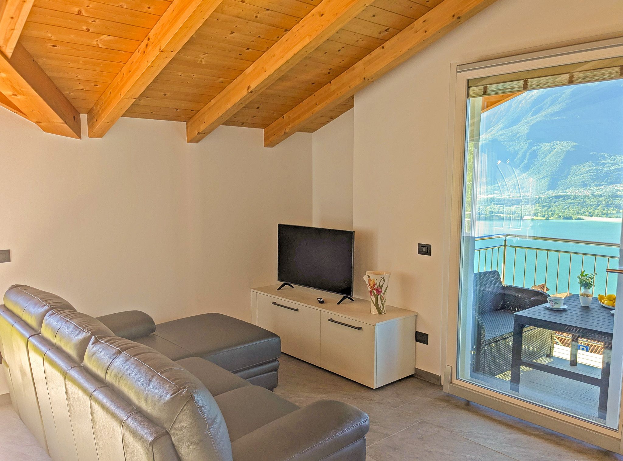 L'appartamento per vacanze si trova all'ultimo piano di una casa con due appartamenti a Trezzone, un incantevole paesino in collina sopra Gera Lario, sulla sponda occidentale del Lago di Como. Da qui si gode di una vista panoramica mozzafiato sul lago e sulle montagne circostanti.