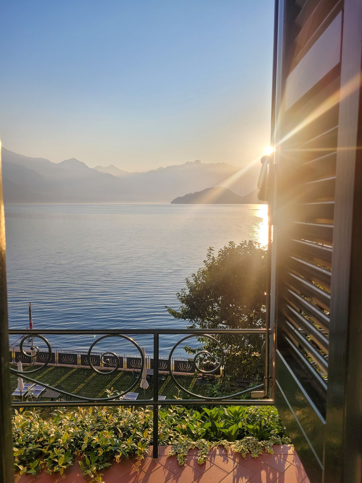Il luminoso bagno sul lato lago è dotato di doccia.