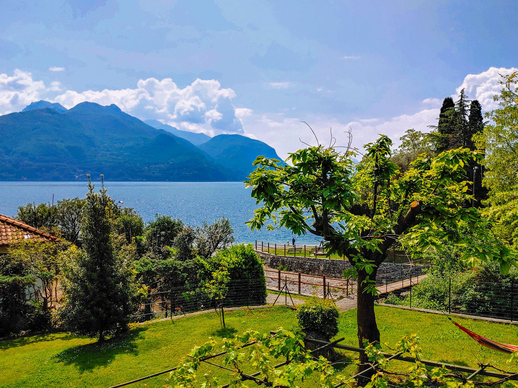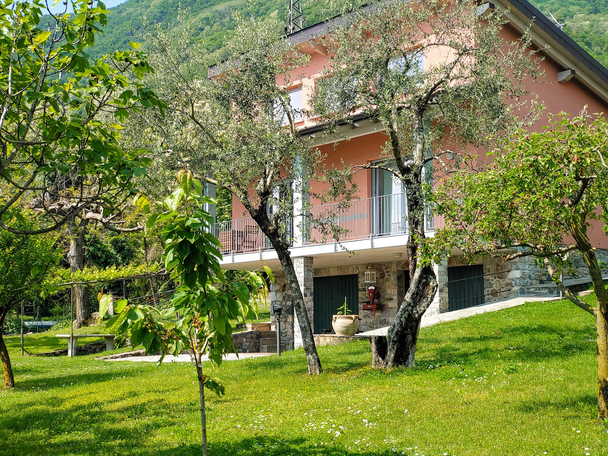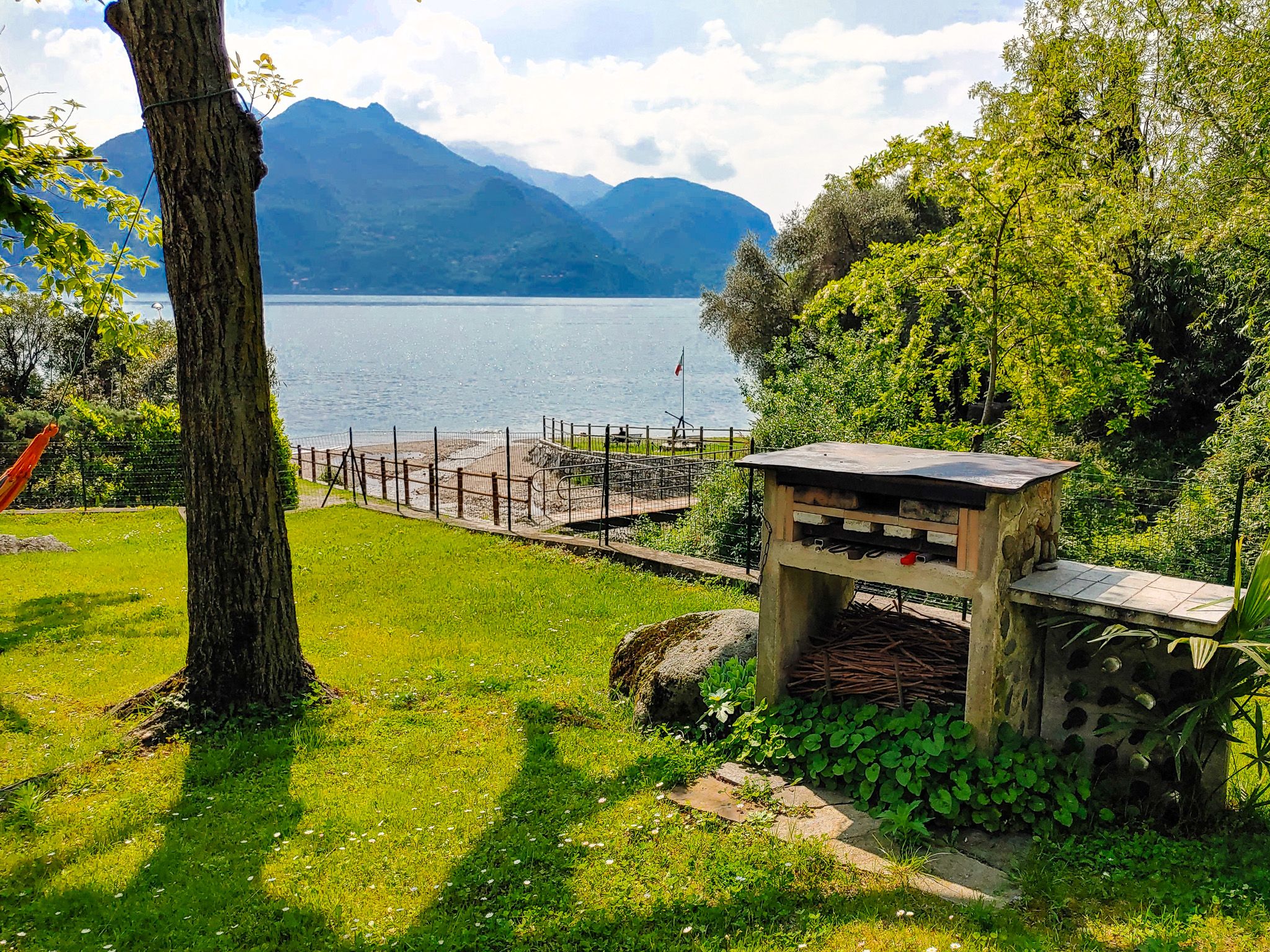 Dal lato della montagna, 3-4 gradini conducono all'ampia e luminosa zona giorno e pranzo con galleria abitabile e cucina laterale e ampio balcone sul lato del lago.