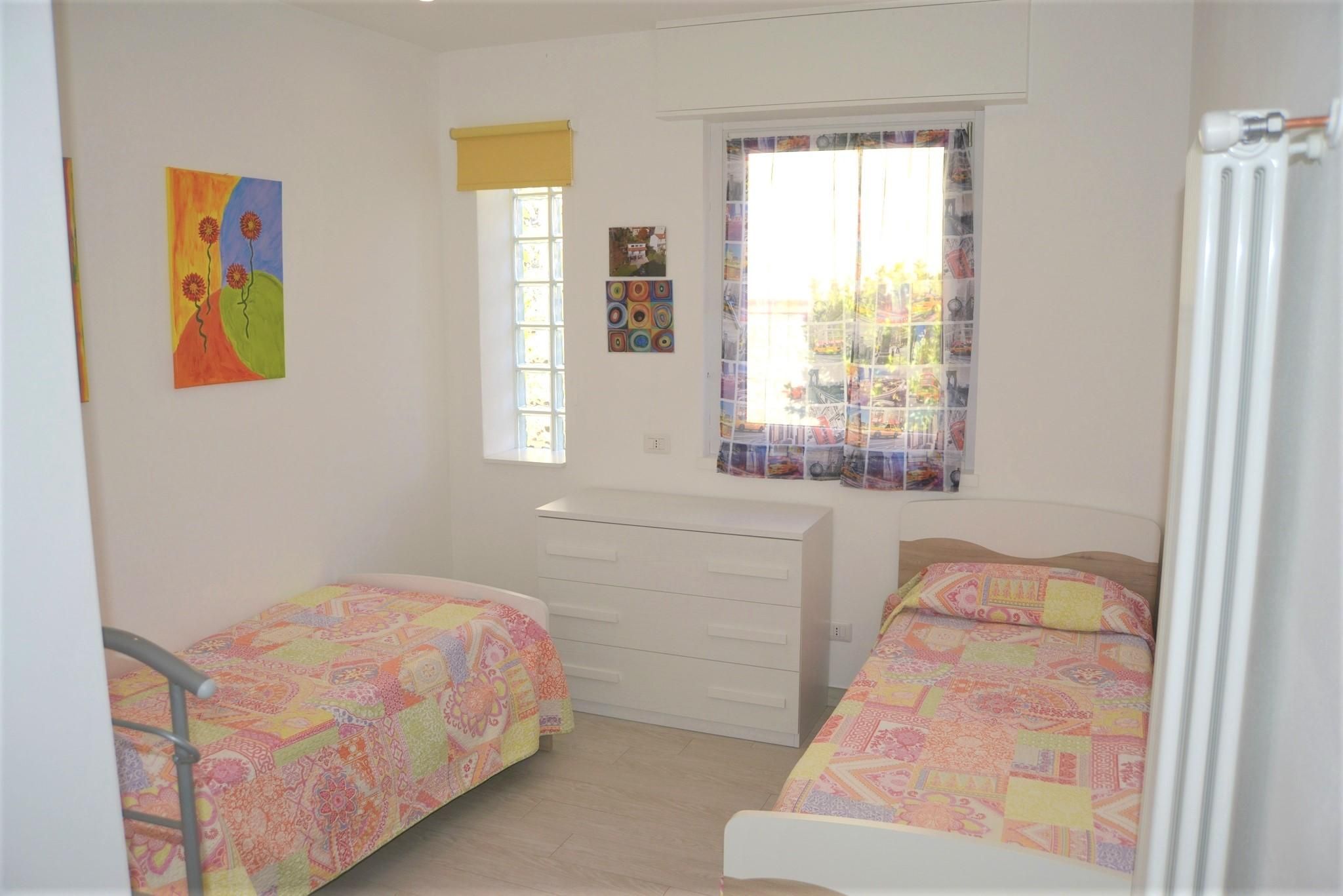 La zona notte è composta da una camera matrimoniale e una doppia. Il laminato di legno chiaro e le piastrelle della cucina/bagno rendono tutto molto accogliente e invitano a rimanere. La padrona di casa è un'artista per hobby e apporta la sua creatività.