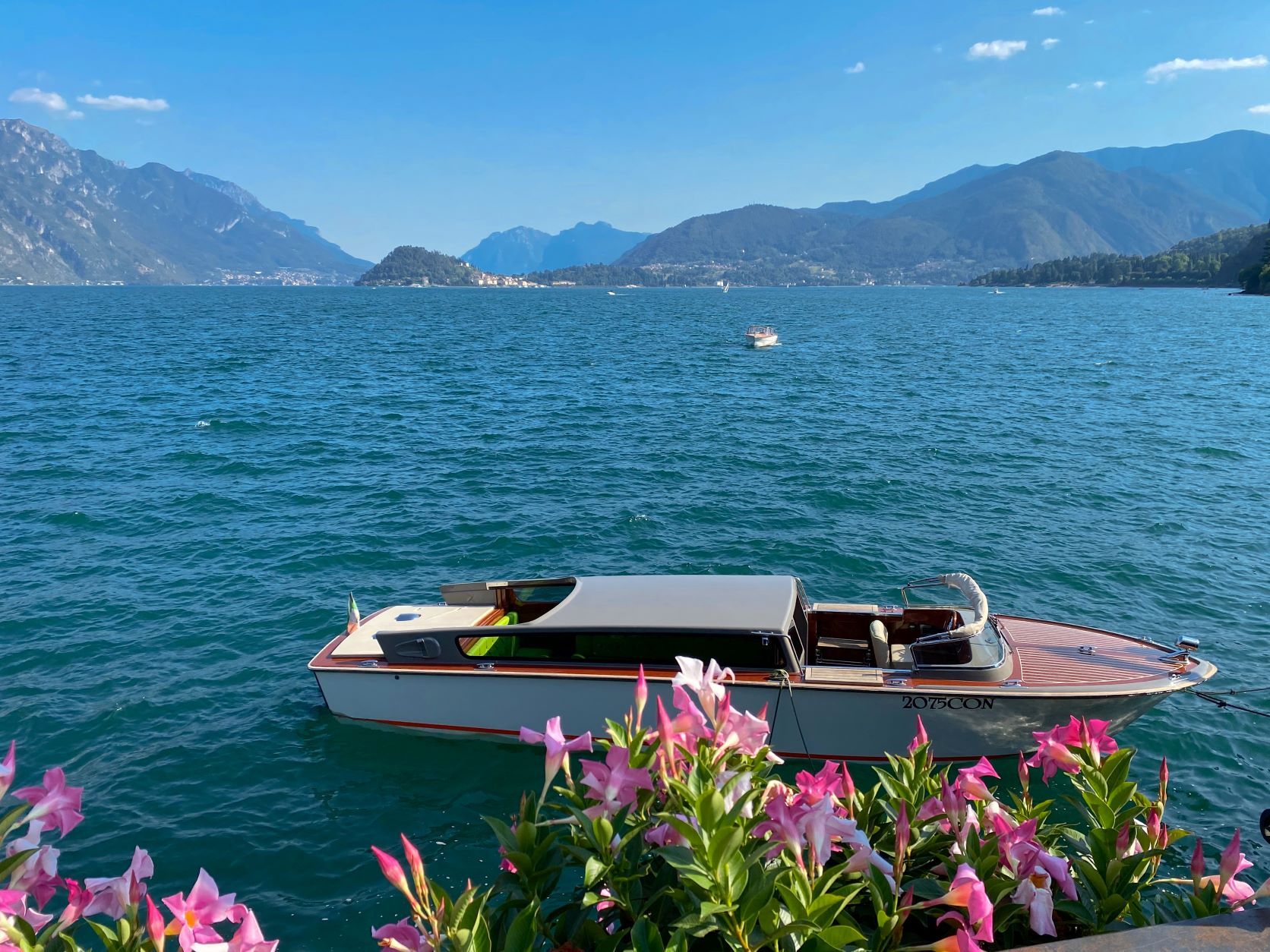 Il balcone ha un piccolo tavolo da pranzo e una fantastica vista panoramica sul lago: dai tetti di Menaggio si può vedere in tutte le direzioni il lago, il promontorio di Bellagio e tutto il paesaggio montano circostante.