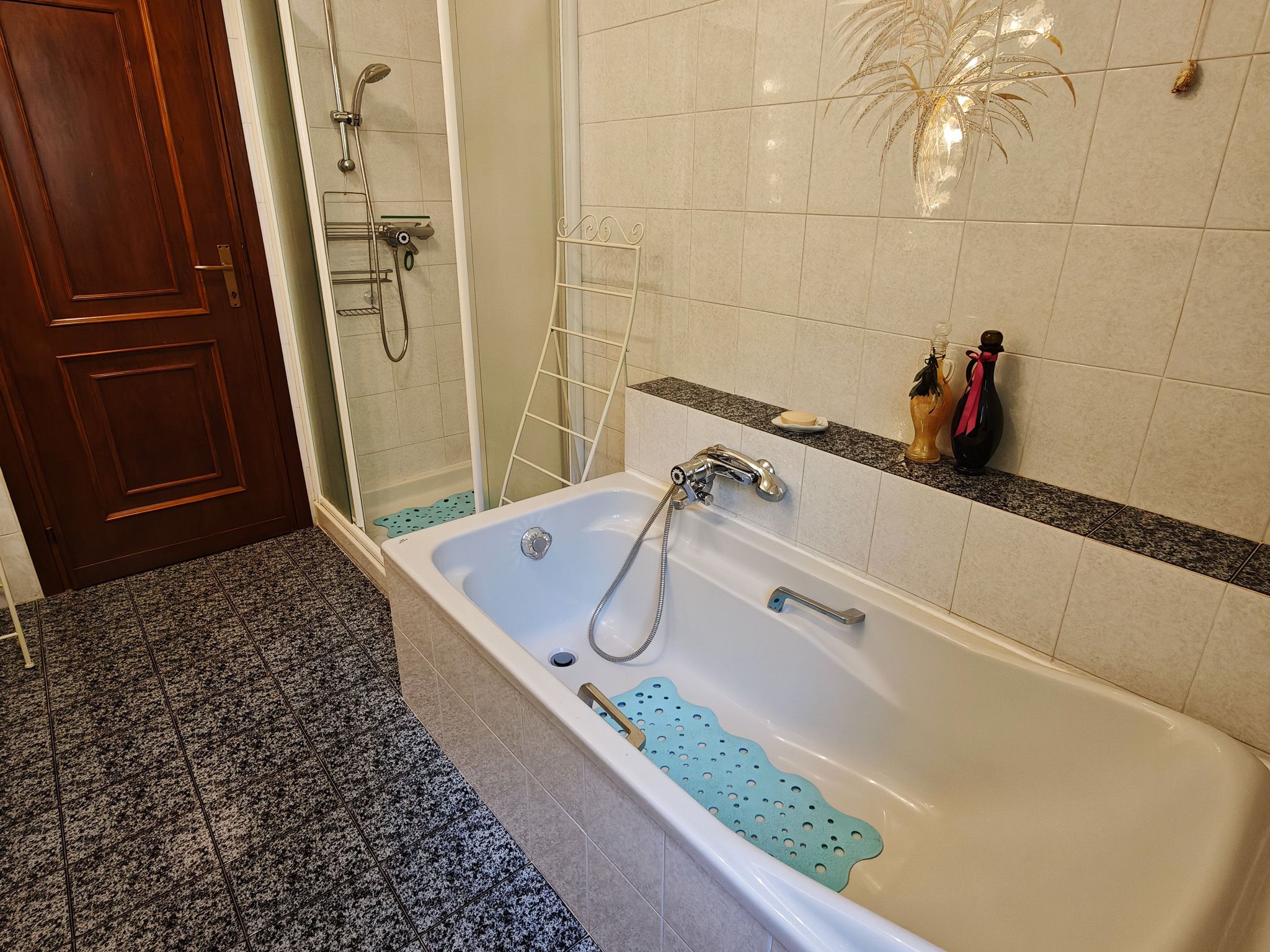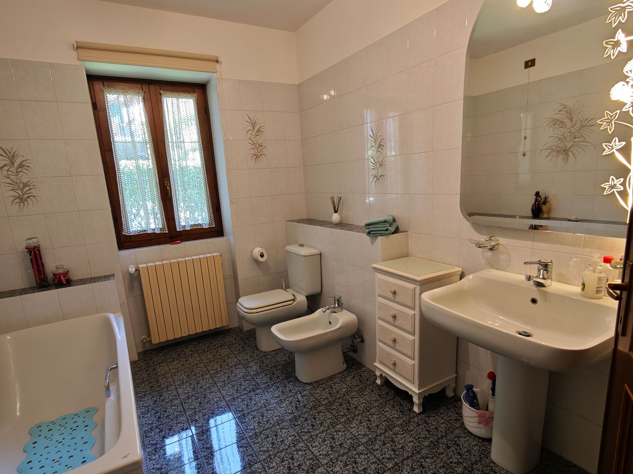 Zona notte: 3 camere matrimoniali lato giardino, due con accesso al balcone, bagno moderno con doccia. il secondo bagno con doccia si trova al livello del giardino.
