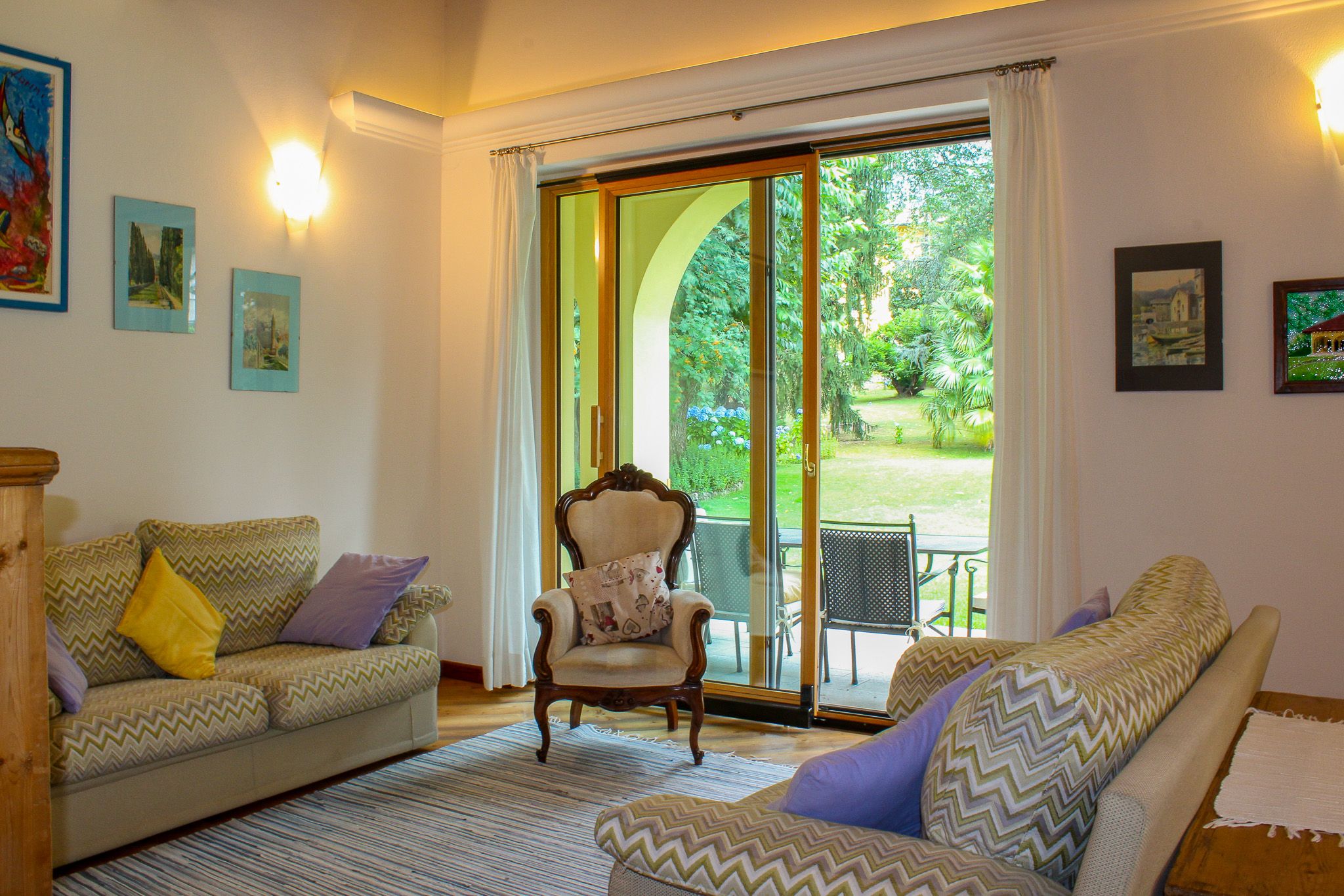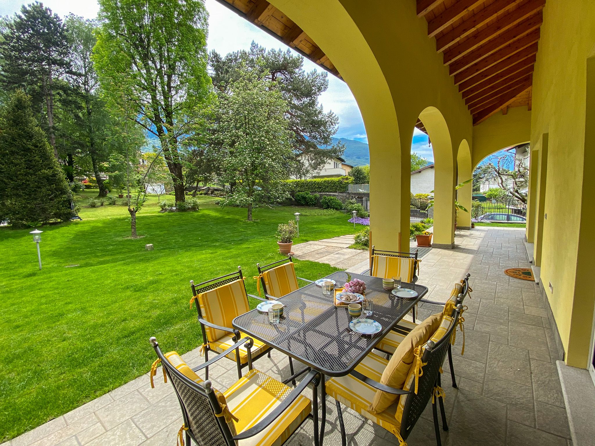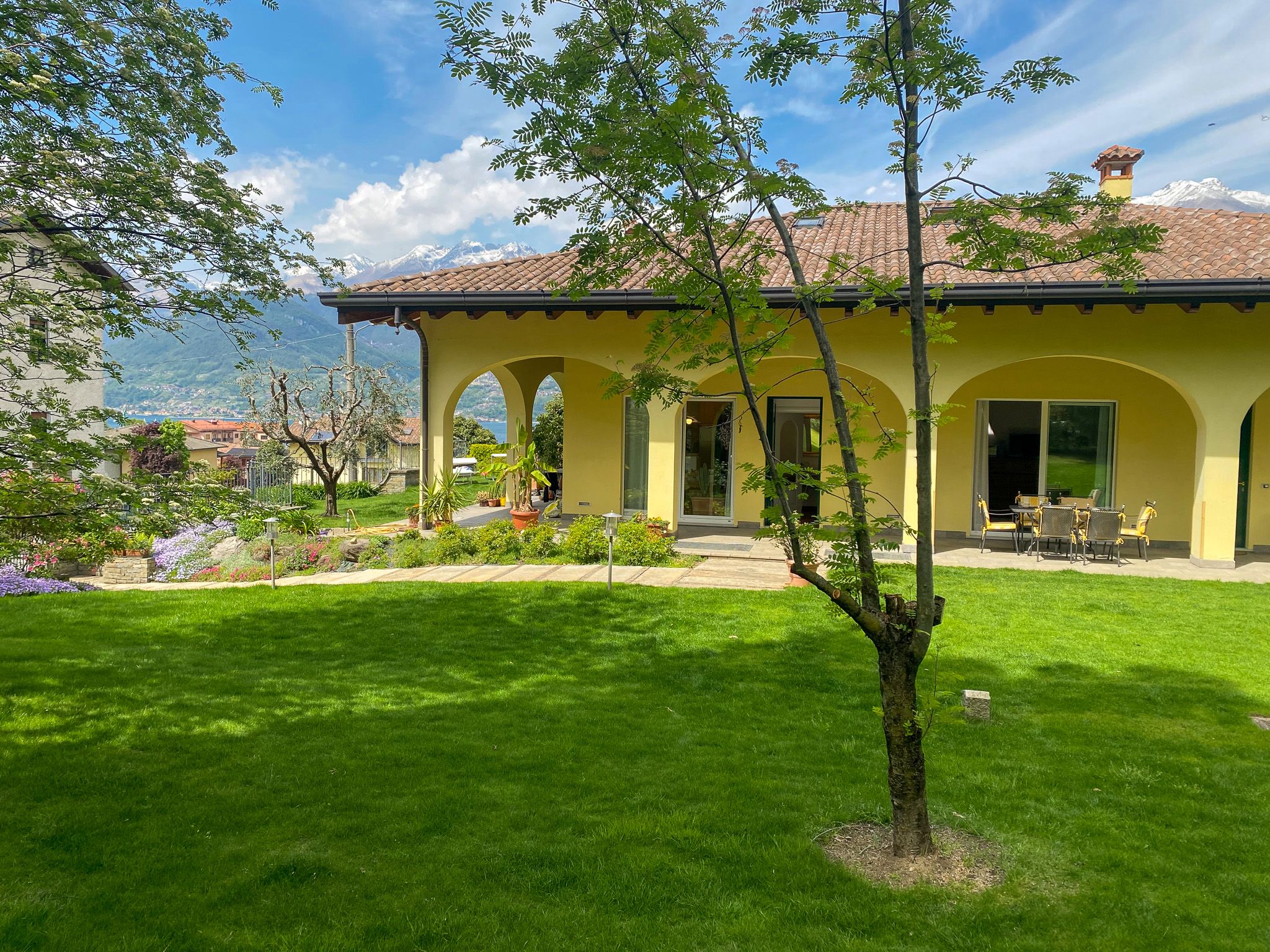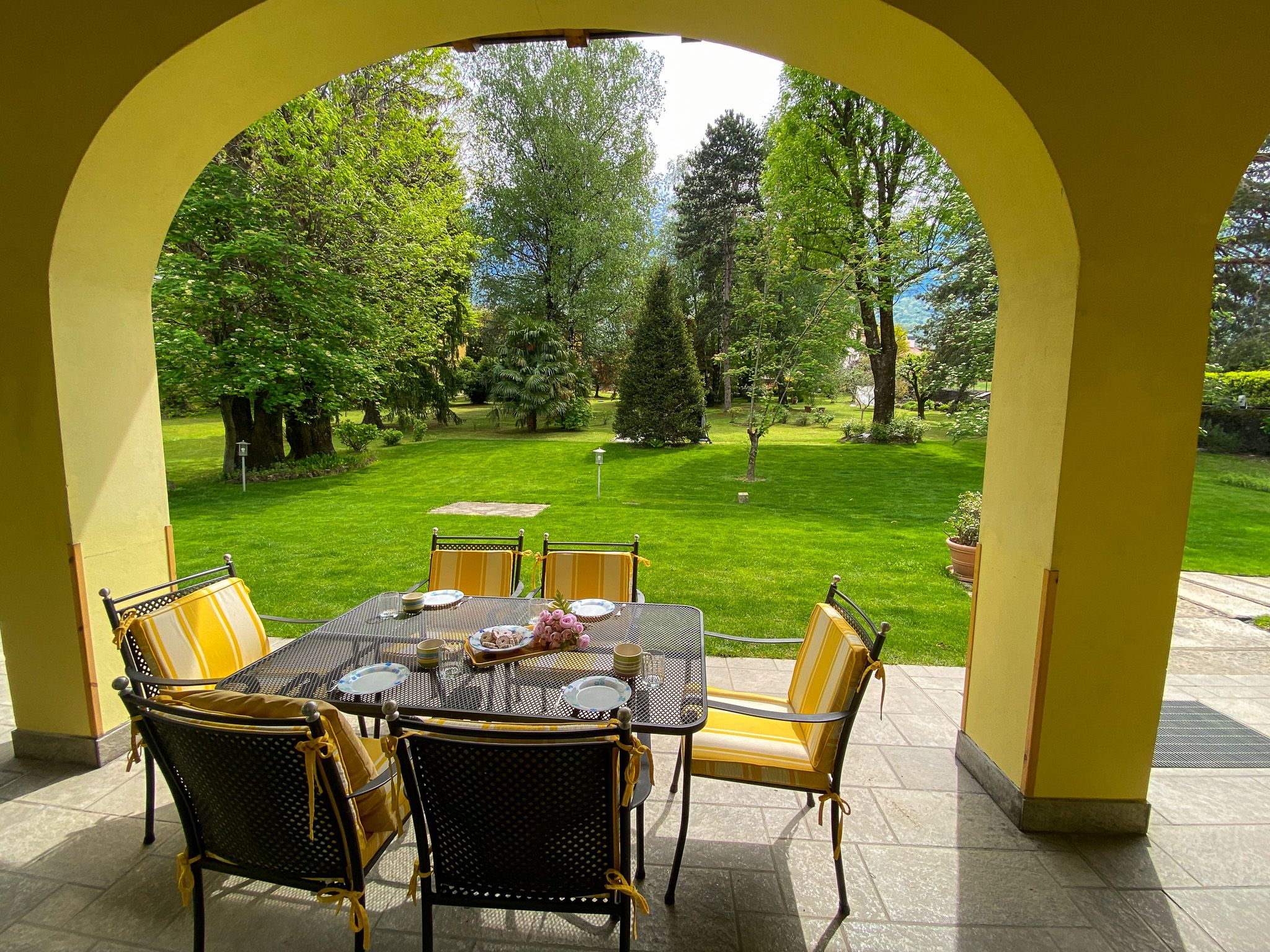 Villa degli Archi è circondata da arcate di grande bellezza architettonica, che hanno dato il nome alla villa. Durante il giorno fanno ombra e soffiano una piacevole brezza rinfrescante, mentre in tarda serata riscaldano la notte fresca. Grazie al dolce pendio soleggiato, da Villa degli Archi si gode di una splendida vista sul lago, sui tetti della località turistica di Colico e sul paesaggio montano circostante. La villa si affaccia sul lago all'interno di un parco di circa 2.500 mq, circondato su tutti i lati da un antico muro di cinta. Sulla terrazza porticata si trovano lettini e un tavolo da pranzo, mentre un altro tavolo da pranzo si trova sul lato del lago per godersi il sole serale. Un luogo di vacanza privilegiato, con splendide ville lombarde nei dintorni.