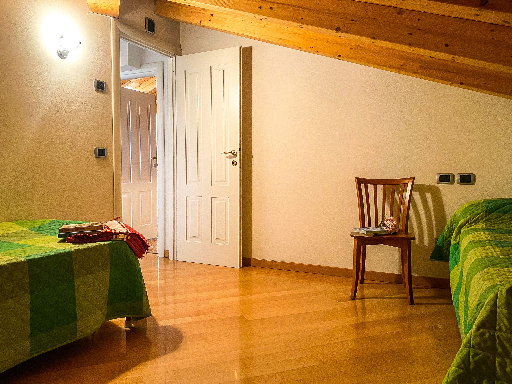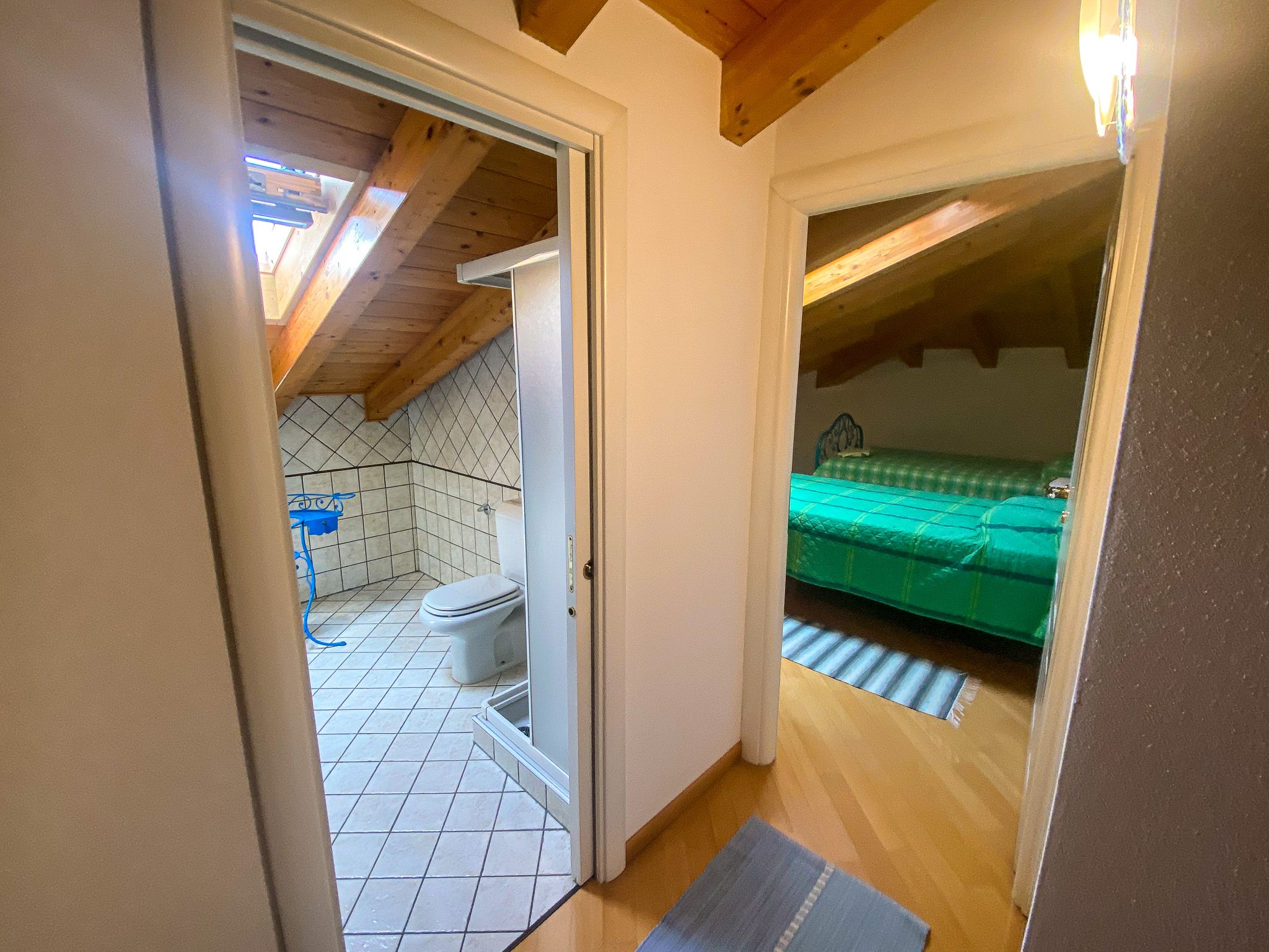 L'ampia galleria abitabile con armadio conduce a due camere doppie (1 x senza luce diurna) e al bagno con doccia.